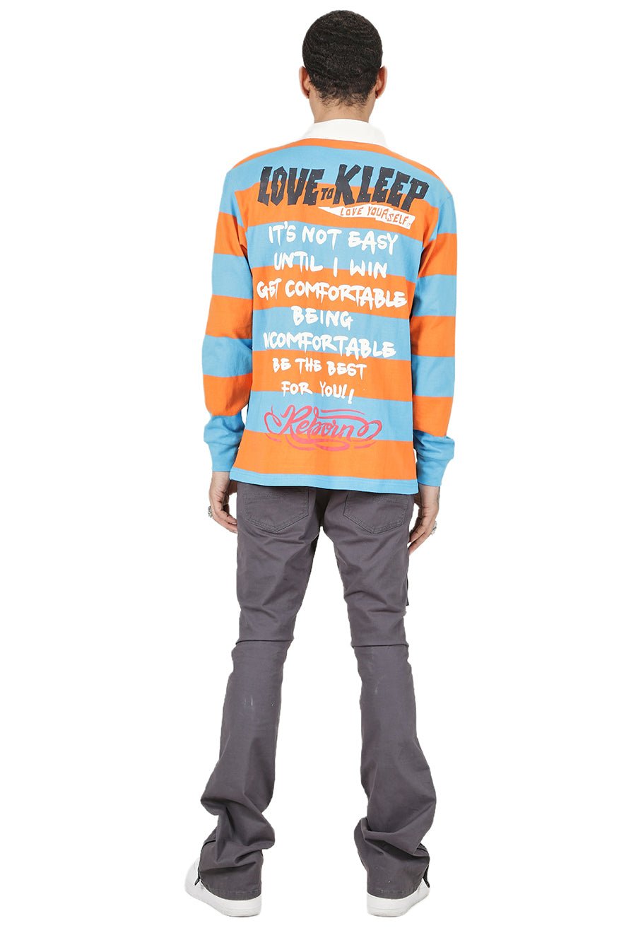 ZORA Kid's Long Sleeve Polo Shirt With Heavy Print Effects & Patch Works