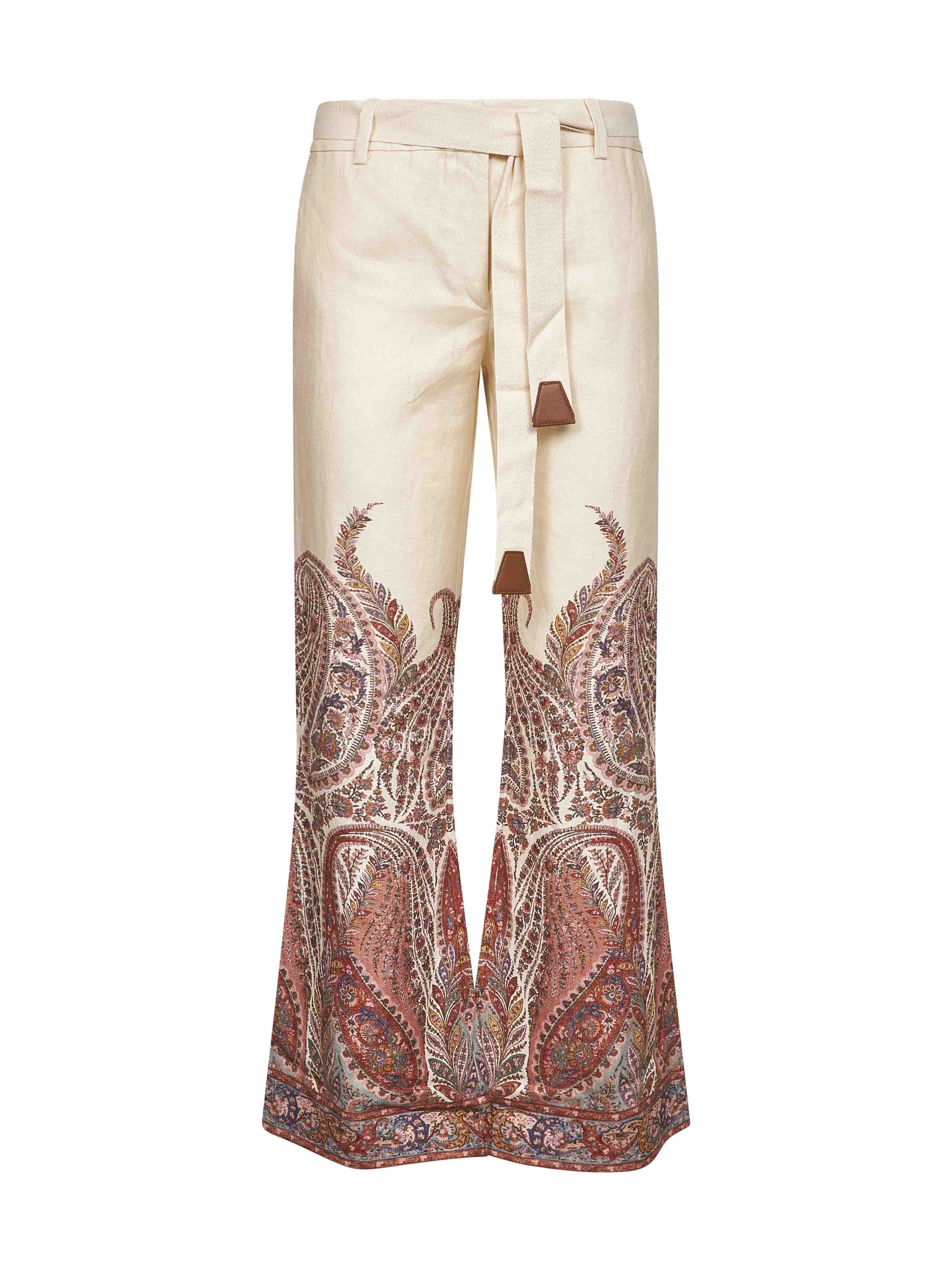 Zimmermann Women Cream Paisley Linen Rhiannon Flared Trousers