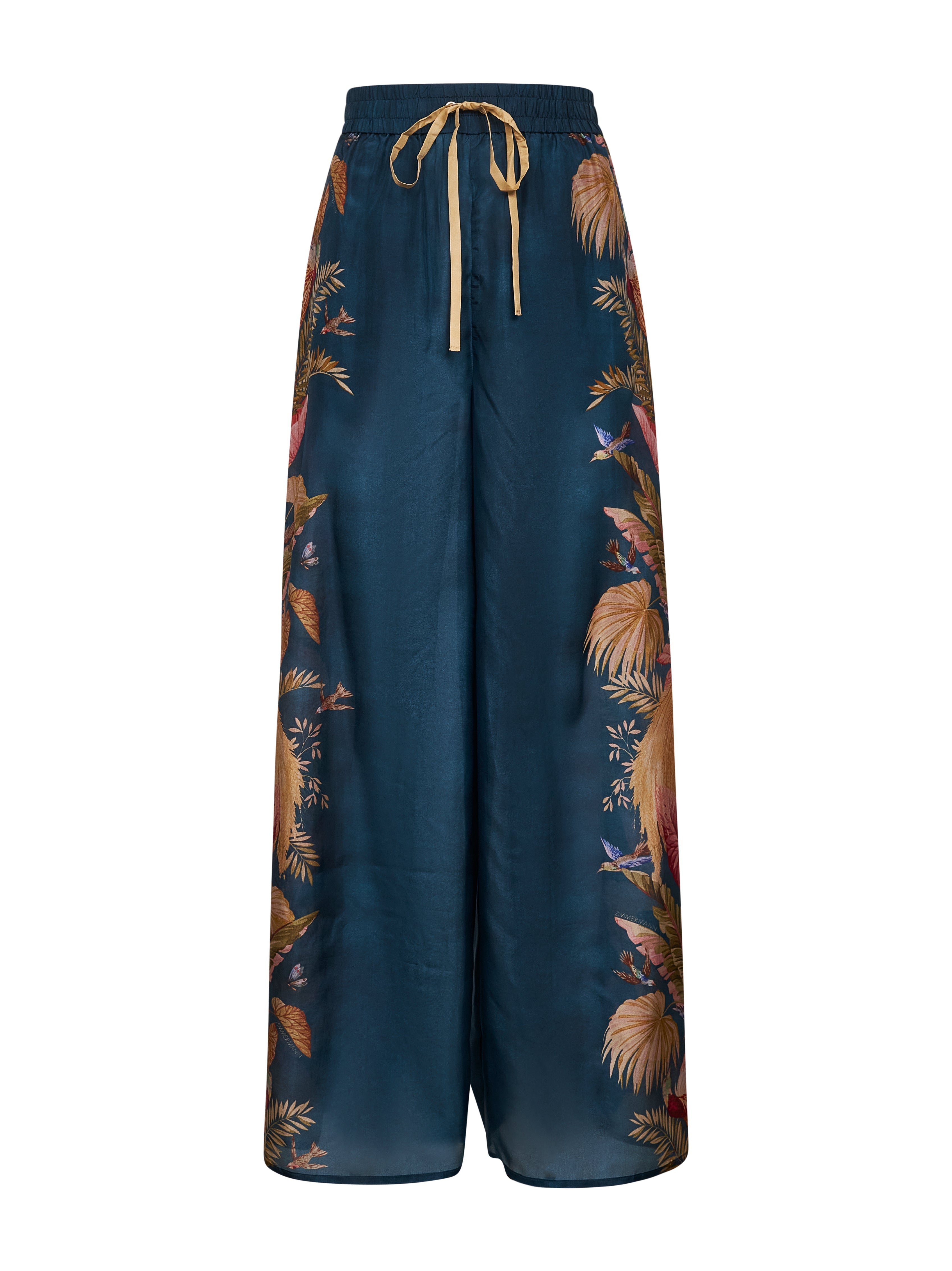 Zimmermann Women Blue Palm Floral Habotai Silk Ascension Trousers