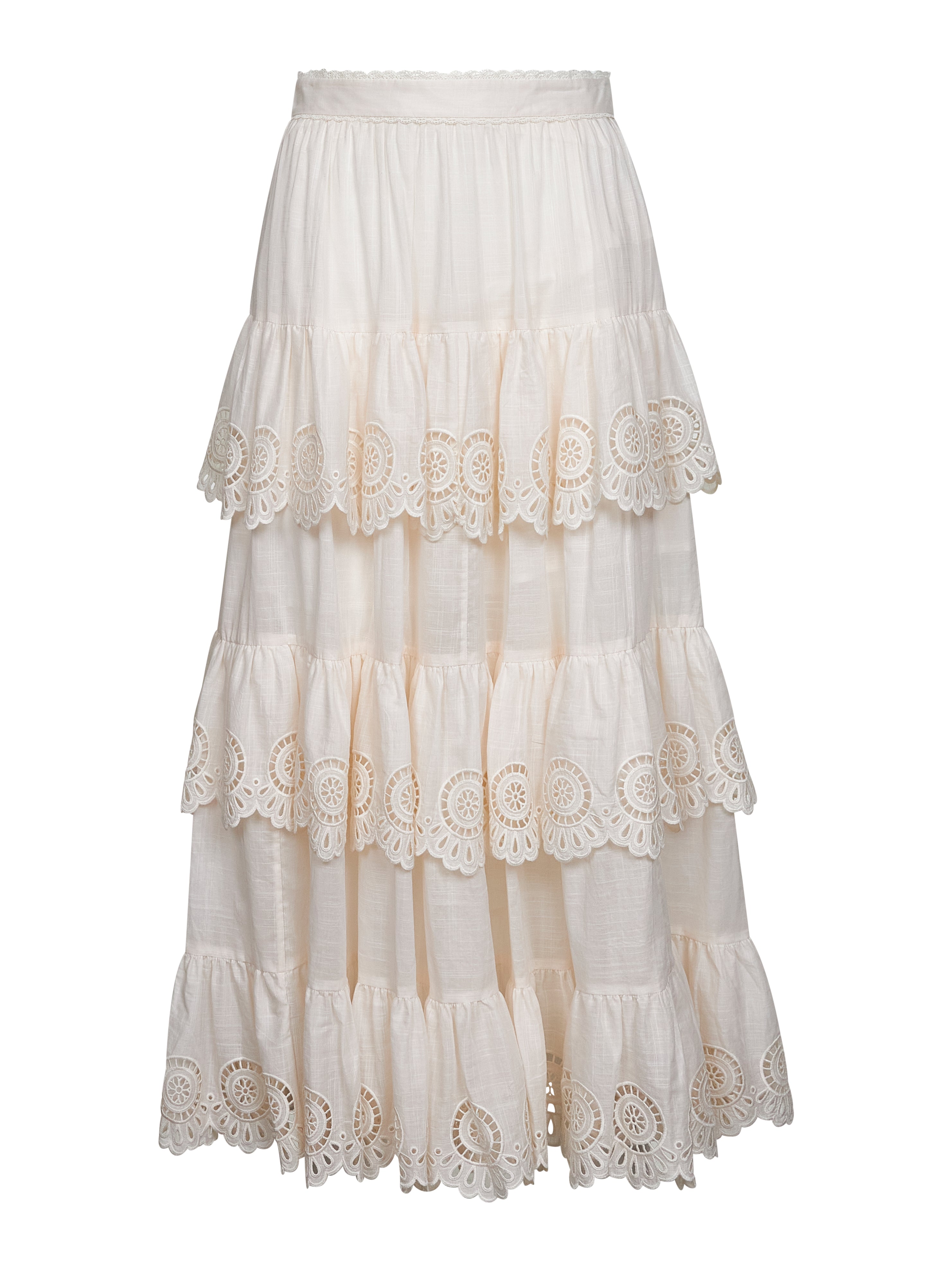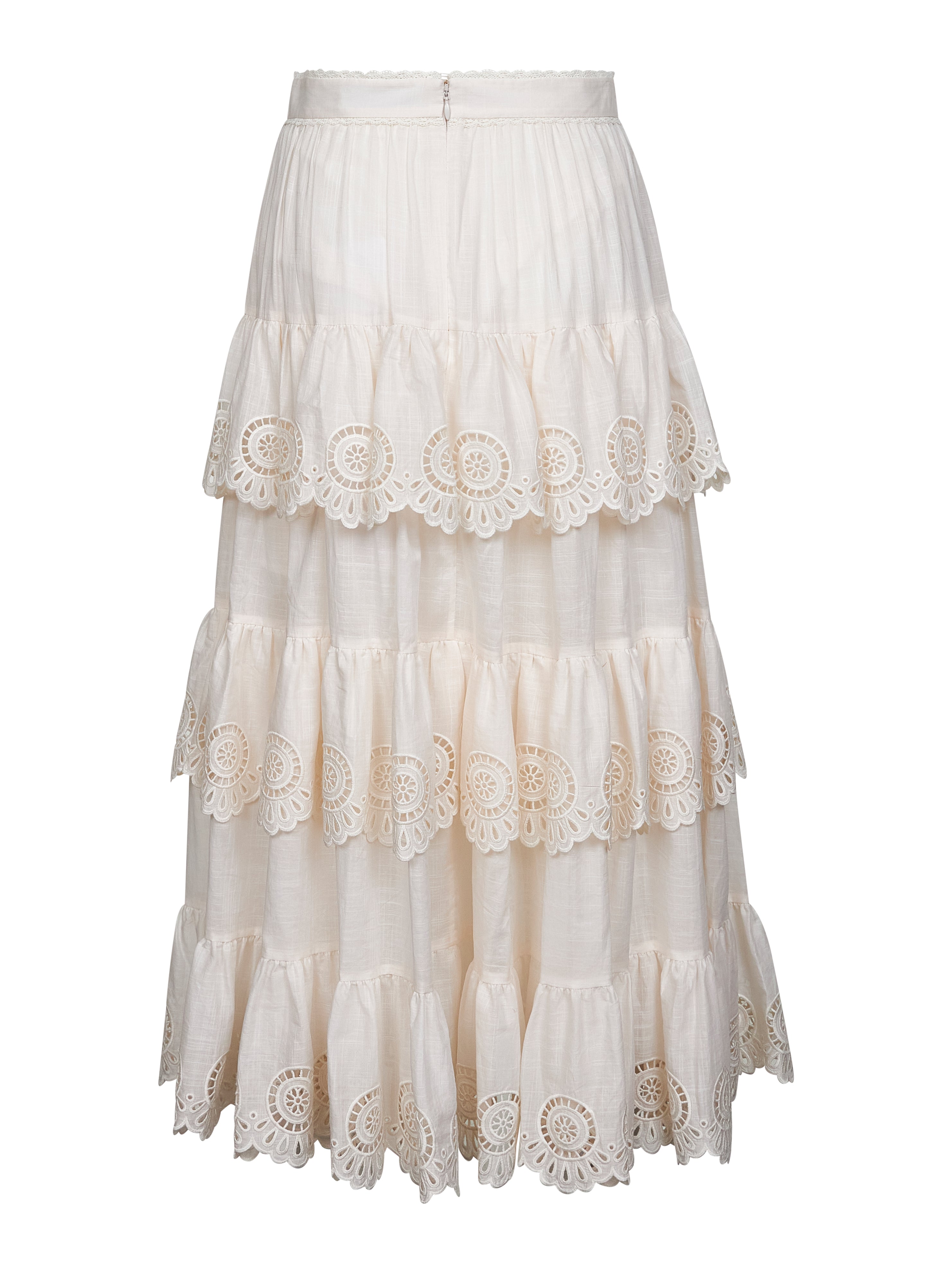 Zimmermann Women Ivory Embroidered Cotton Lucky Tiered Midi Skirt