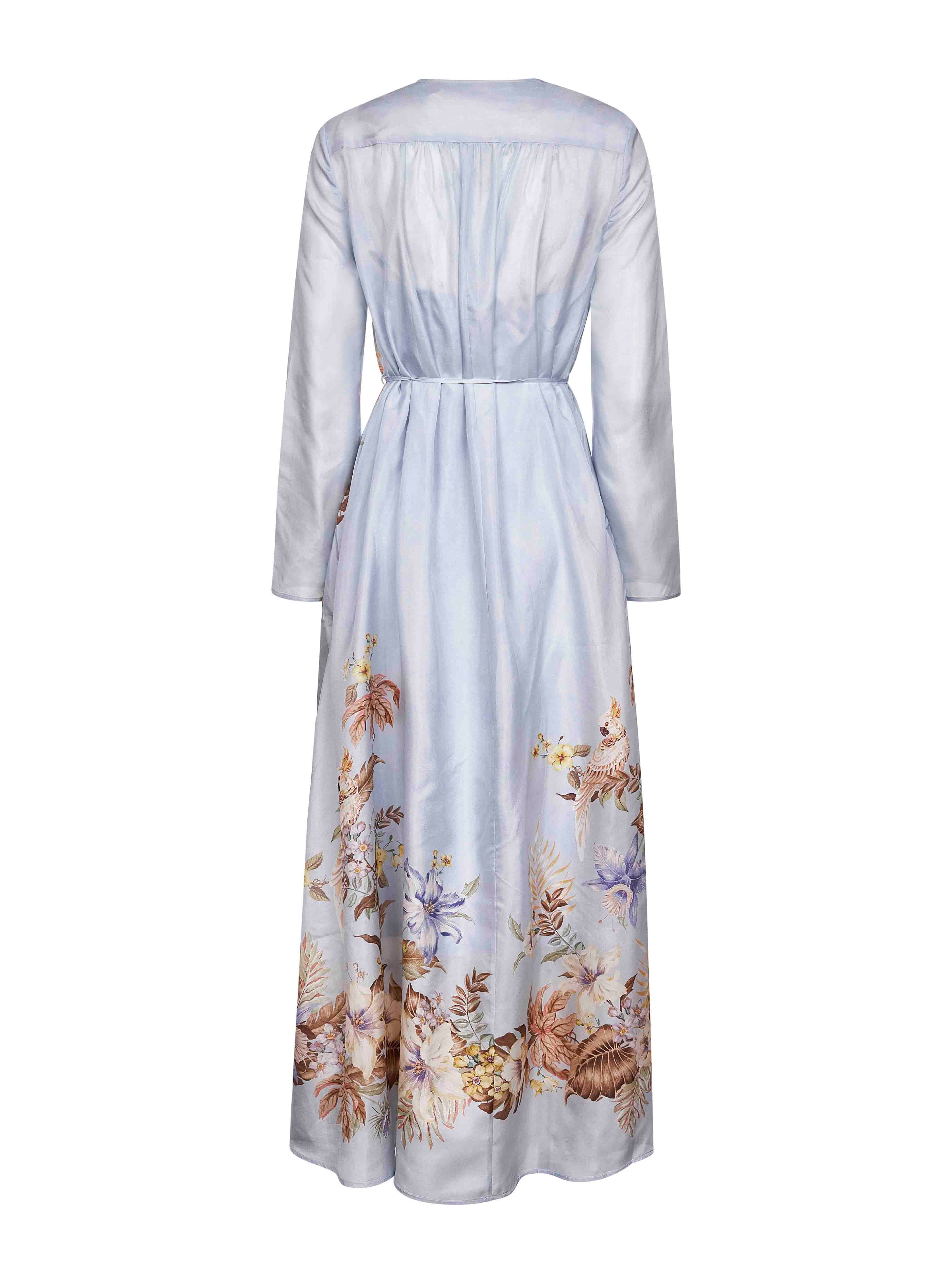 Zimmermann Women Powder Blue Multi Floral Silk Habotai Coco Maxi Dress