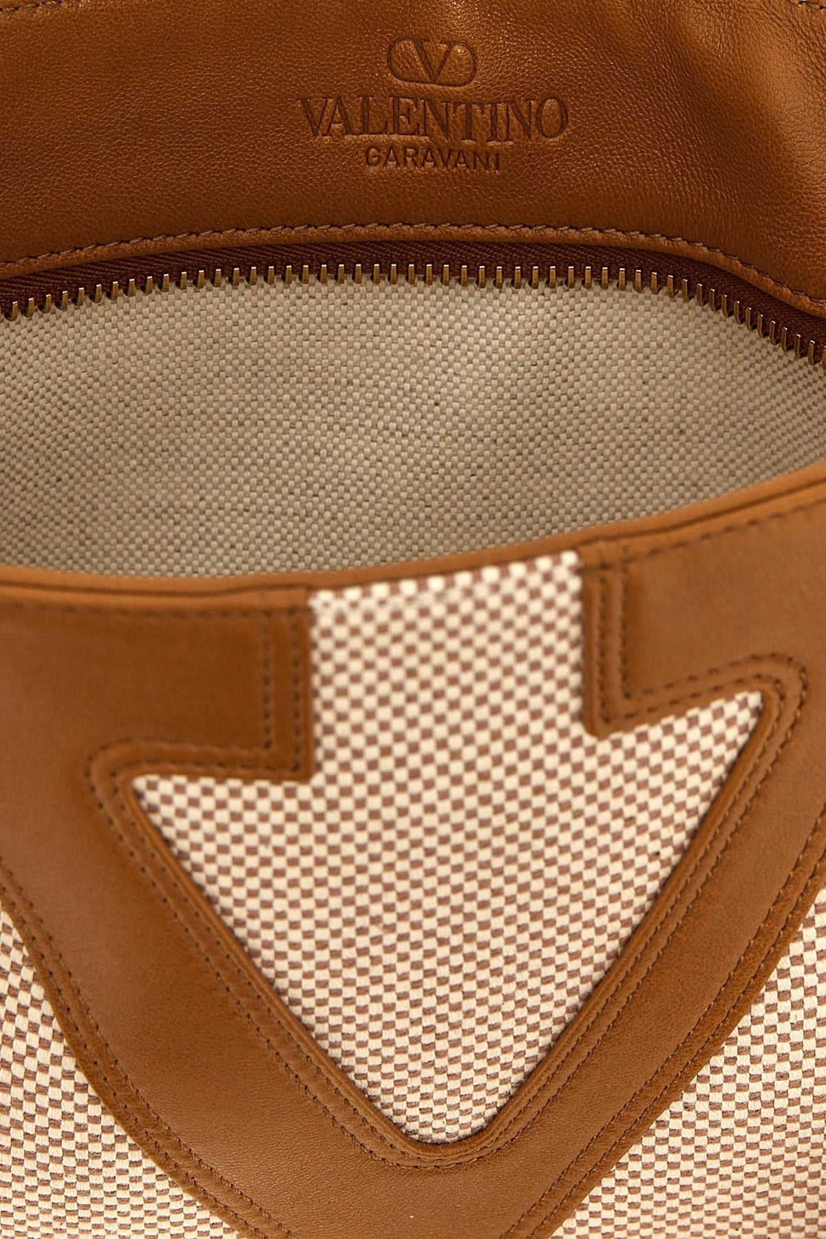 Small in canvas 'Viva Superstar' shopping bag with contrast maxi VLogo Signature leather, double sliding leather and chain handle, zip closure, back zip pocket.