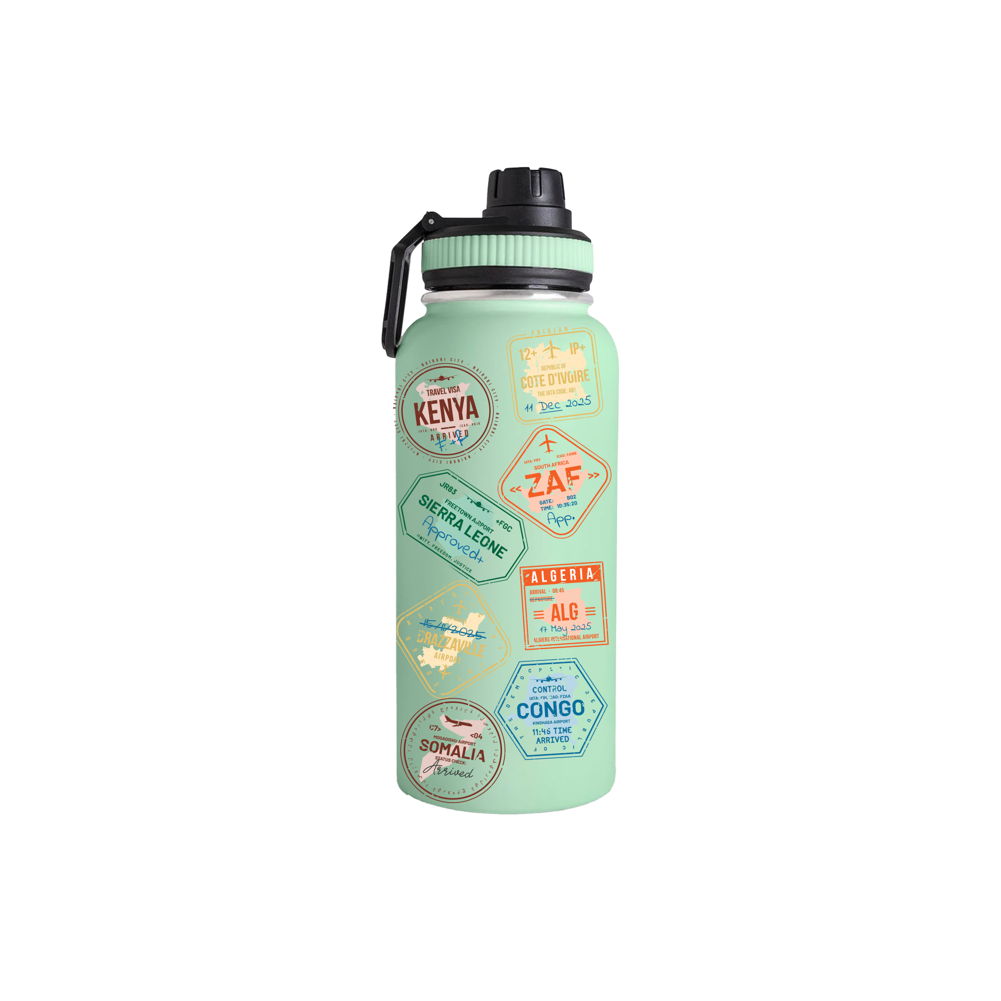 Visa Stamp Water Bottle Mint Green
