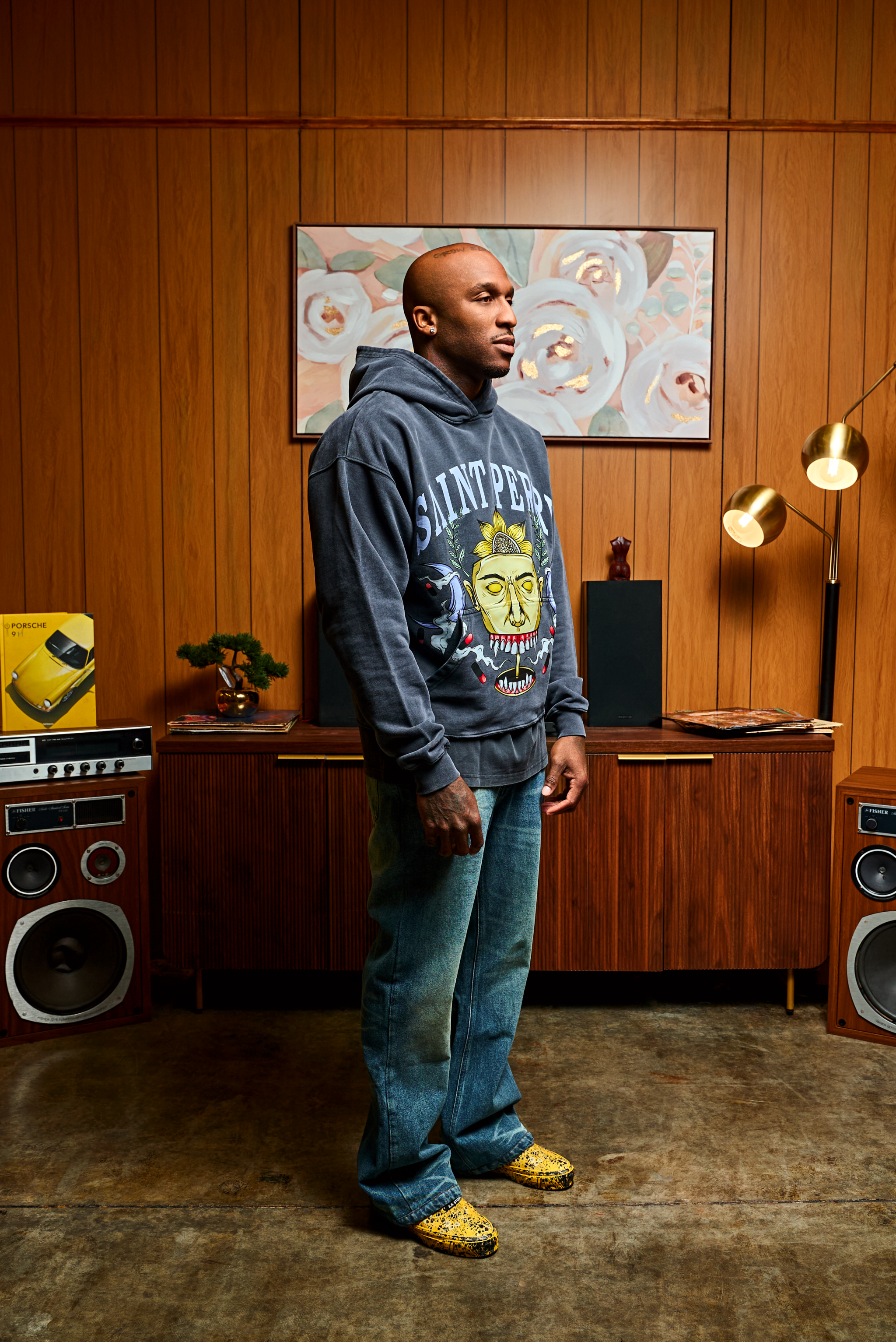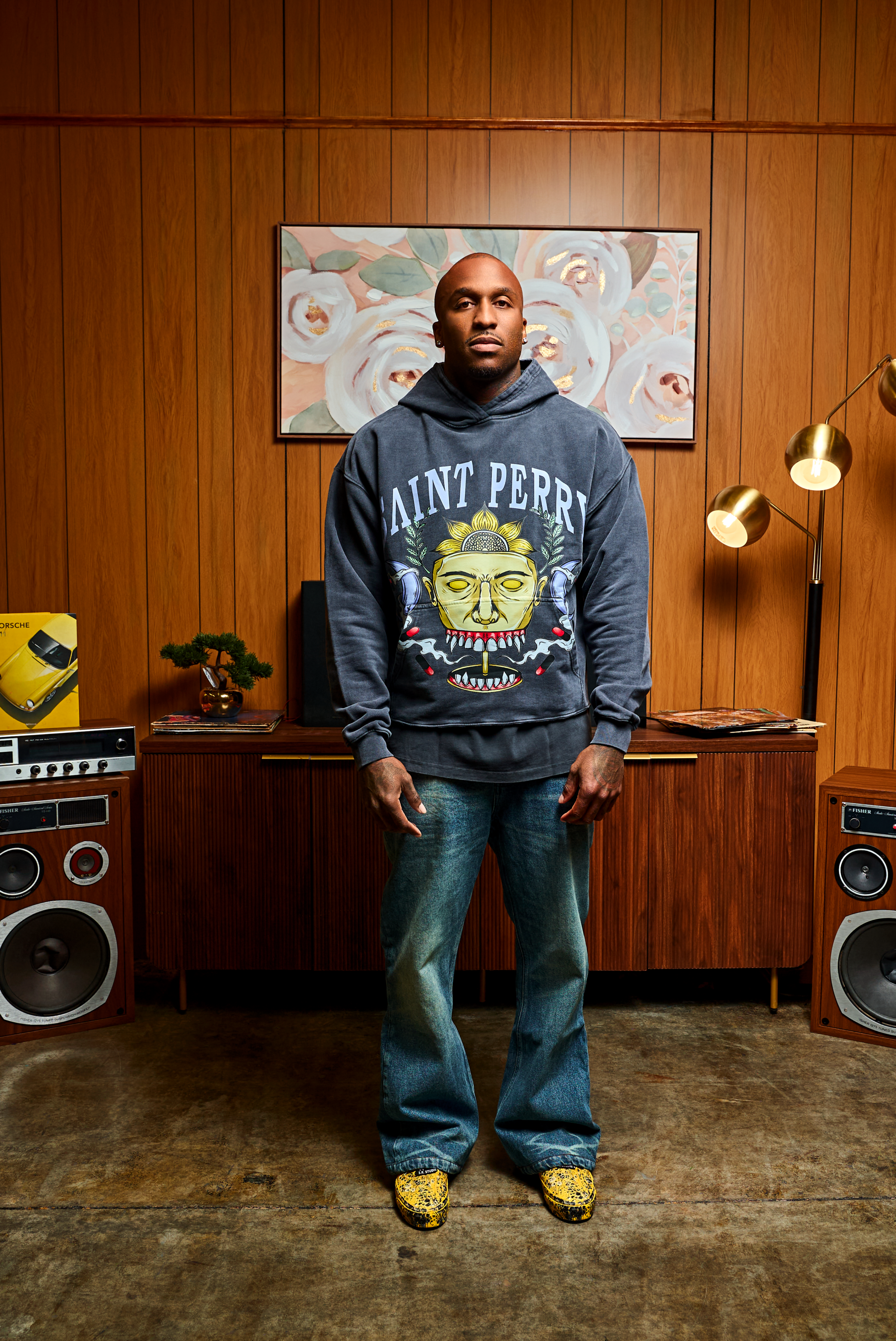 The Oracle Hoodie embodies Saint Perry’s spirit of fearless self-expression. Crafted from premium garment-washed cotton, it features an intricate golden mask motif framed by laurel and lunar symbols — a modern emblem of strength and mystique. The bold “SAINT PERRY” arch crowns the design, merging street influence with refined artistry.