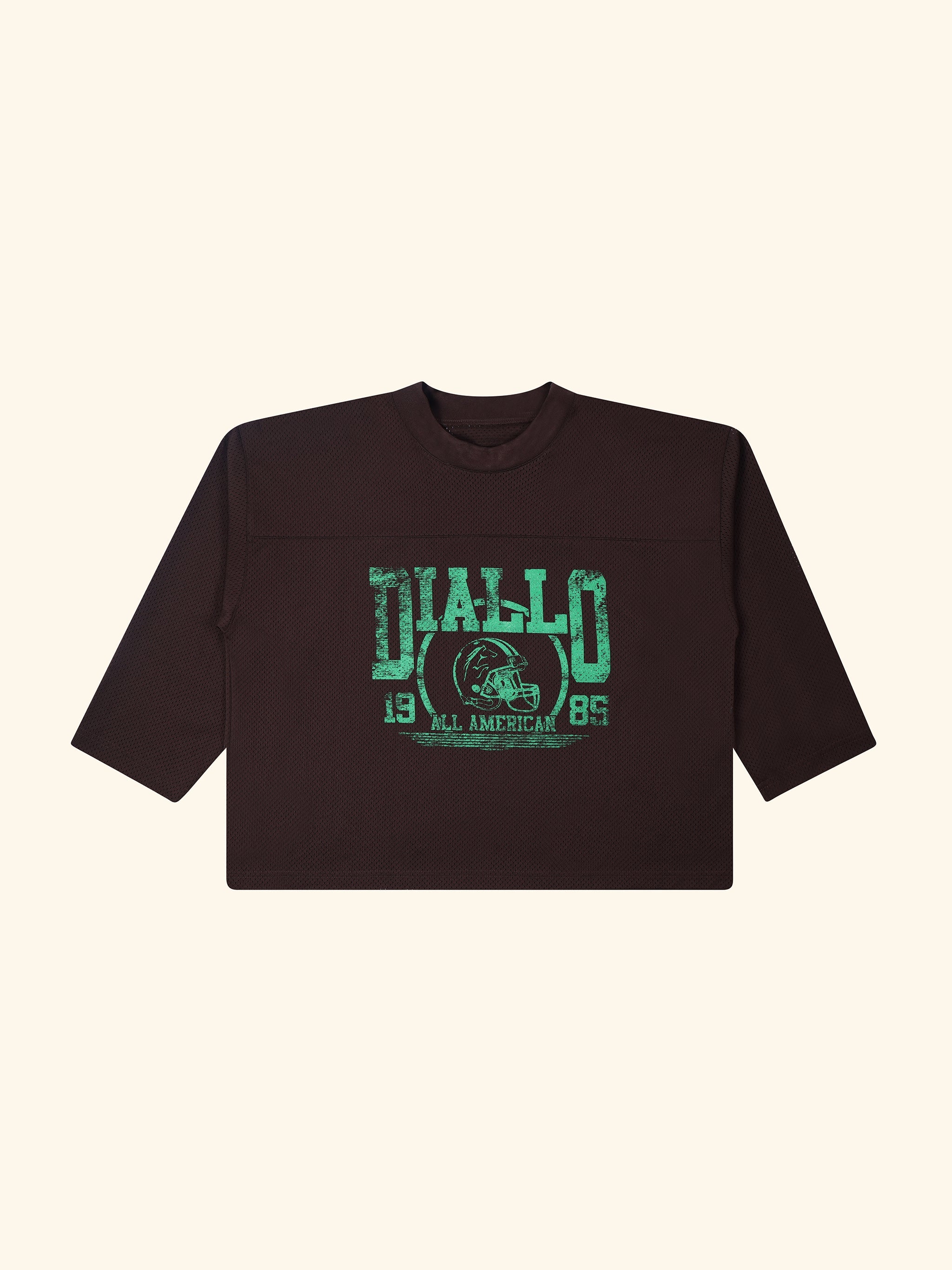 A fresh take on the classic football jersey. Our cropped ¾ sleeve silhouette pairs bold color with vintage-inspired graphics , blending athletic heritage with modern sensibility.