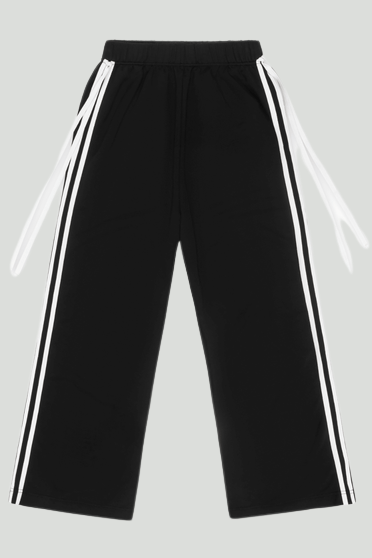 This versatile piece features a relaxed silhouette with a playful bow accent that elevates its casual appeal. Crafted from soft jersey fabric in classic black for maximum wearability, these refined joggers offer the perfect balance of practical comfort and subtle style for both lounging and everyday outings.