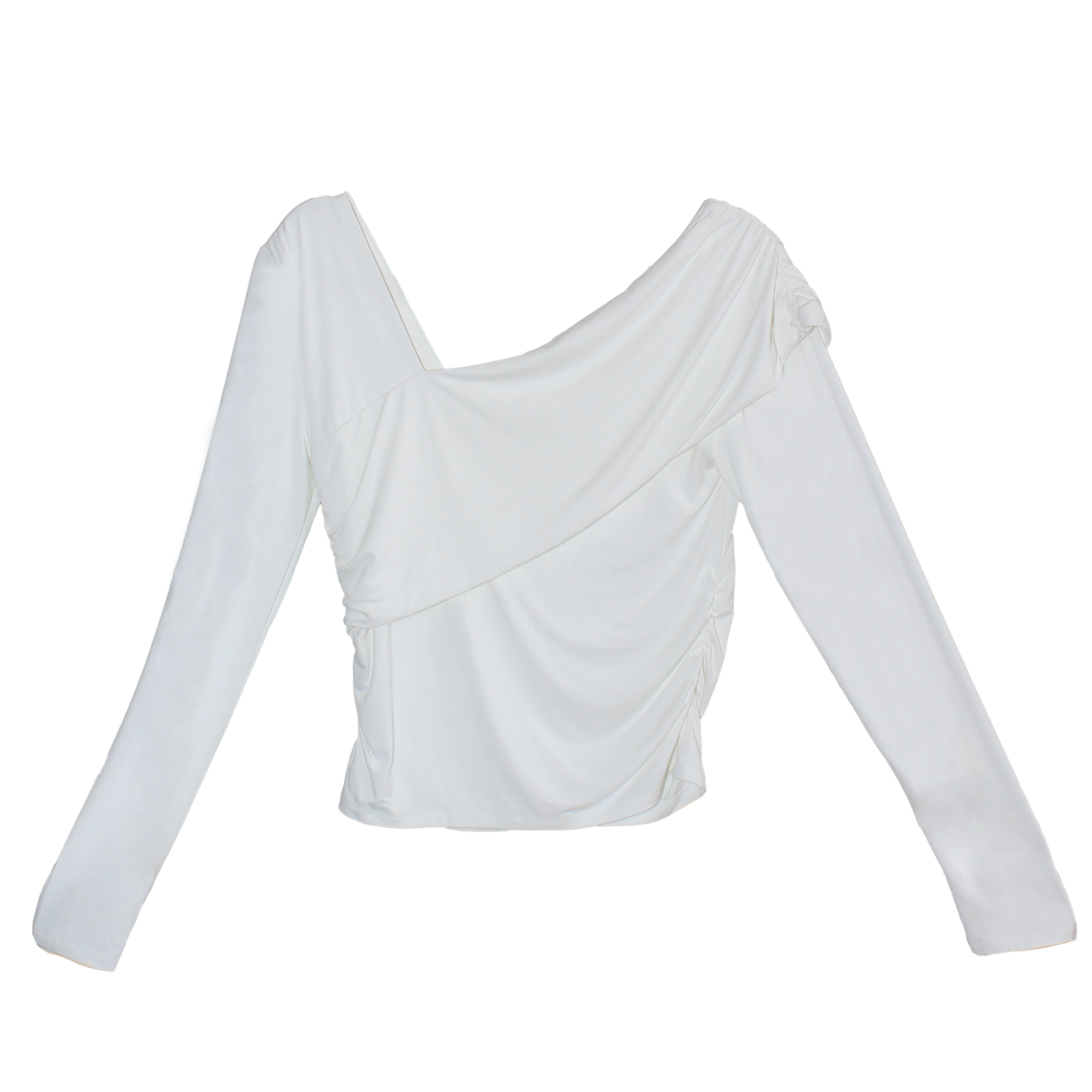 The half open shoulder top is an elevated top with an asymmetrical foldover at the neckline. Made out of tencel jersey, this top is stretchy, soft, and anti-pilling.