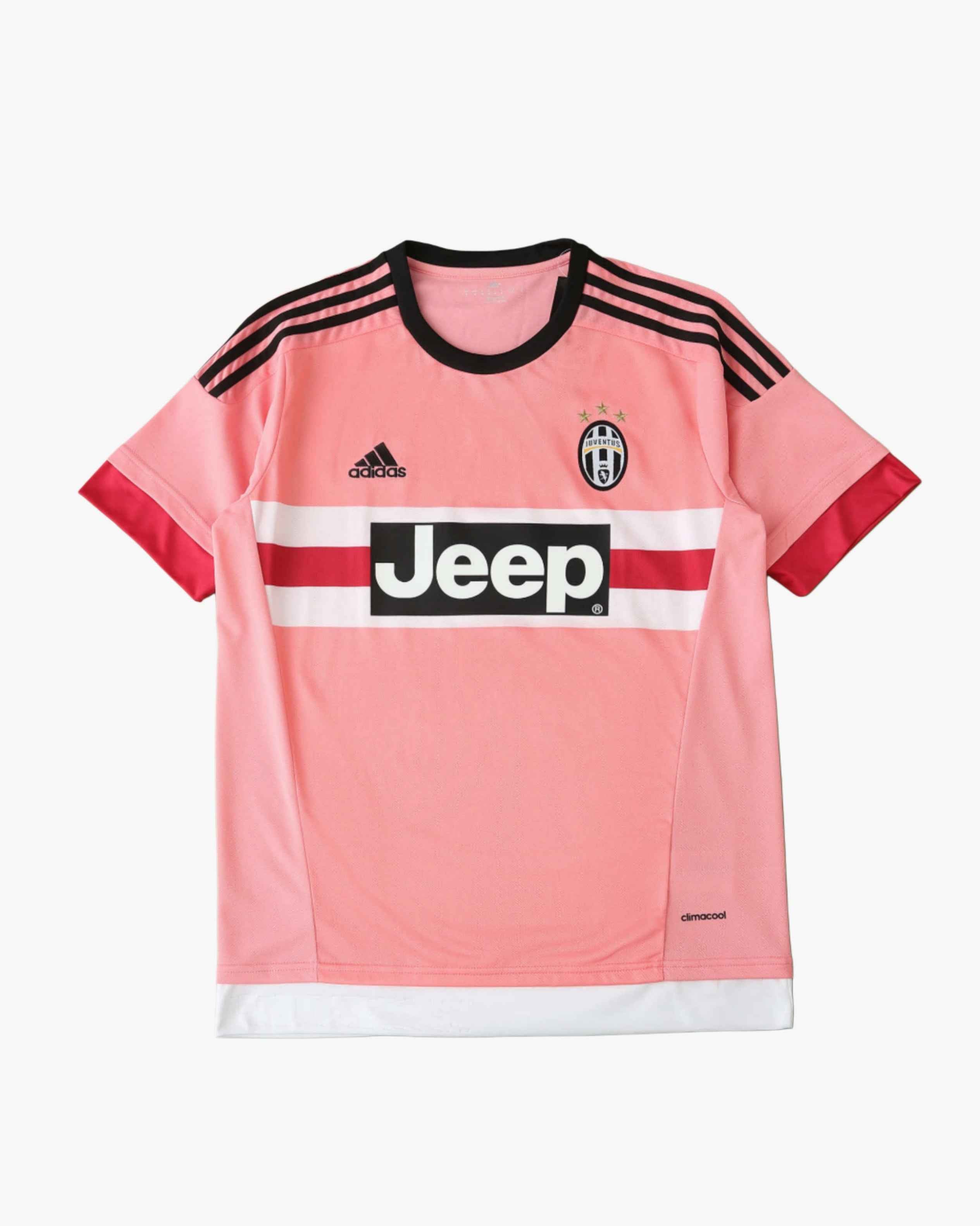 Relive the iconic 2015/16 season with the Footxo Juventus Retro Away Football Jersey. This striking pink soccer shirt is a must-have for any Bianconeri fan or collector.