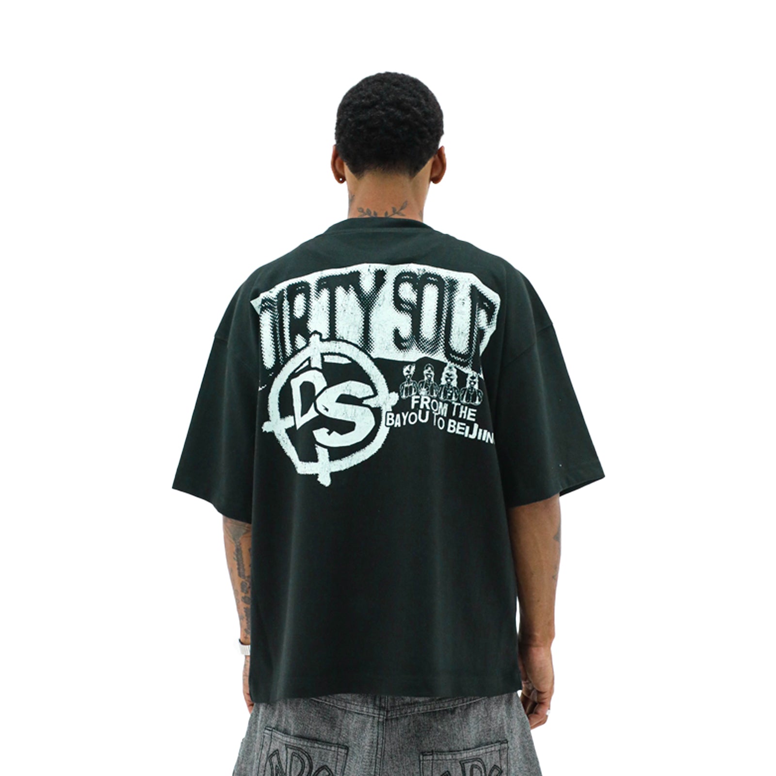 Printed front to back on our 9.0 oz designer tee with a true-to-size fit and our signature drop shoulder cut. Custom made in-house at Heights, no two hits feel the same. This is Dirty Souf storytelling at its rawest‚ from the Bayou to Beijing.