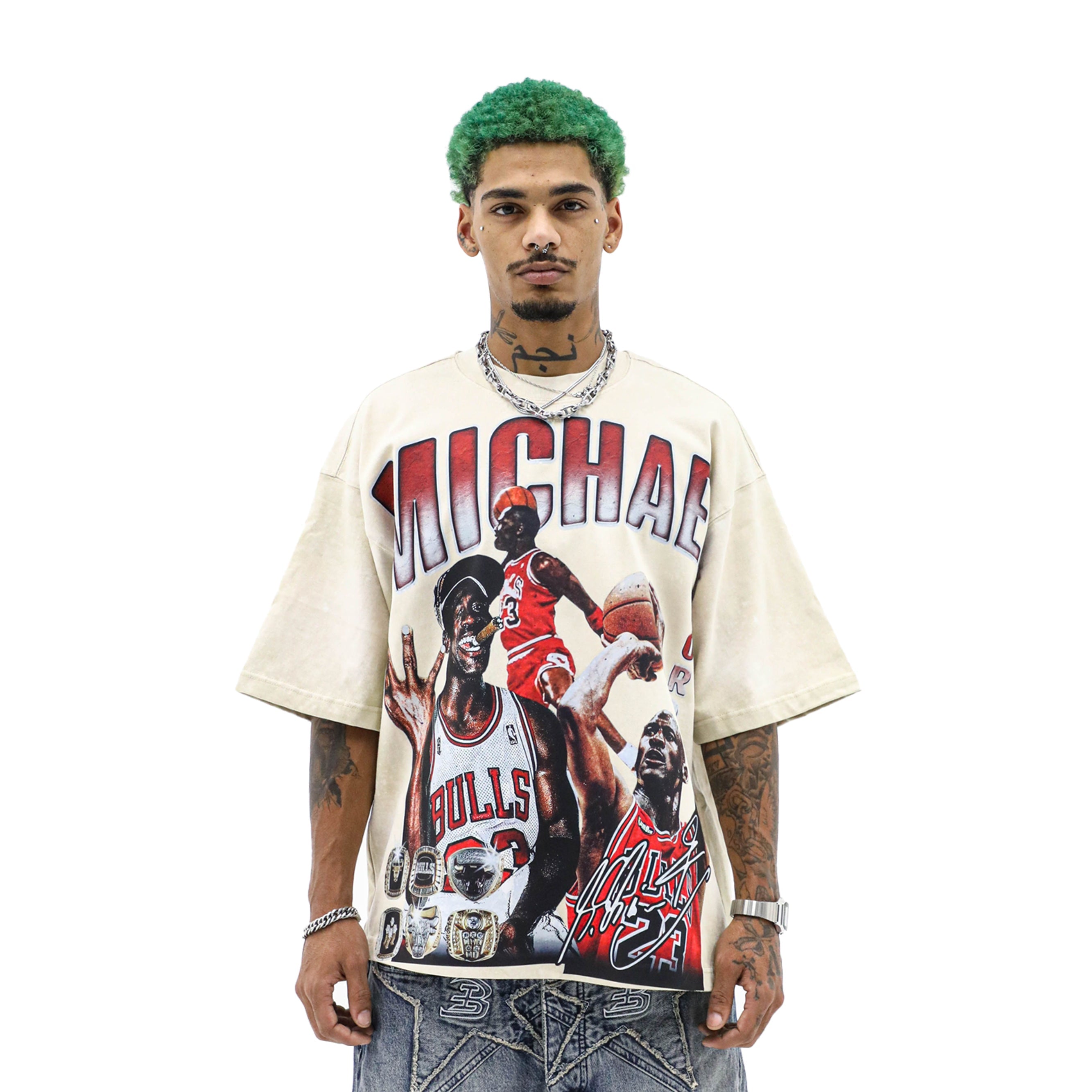 - Oversized front MJ graphic