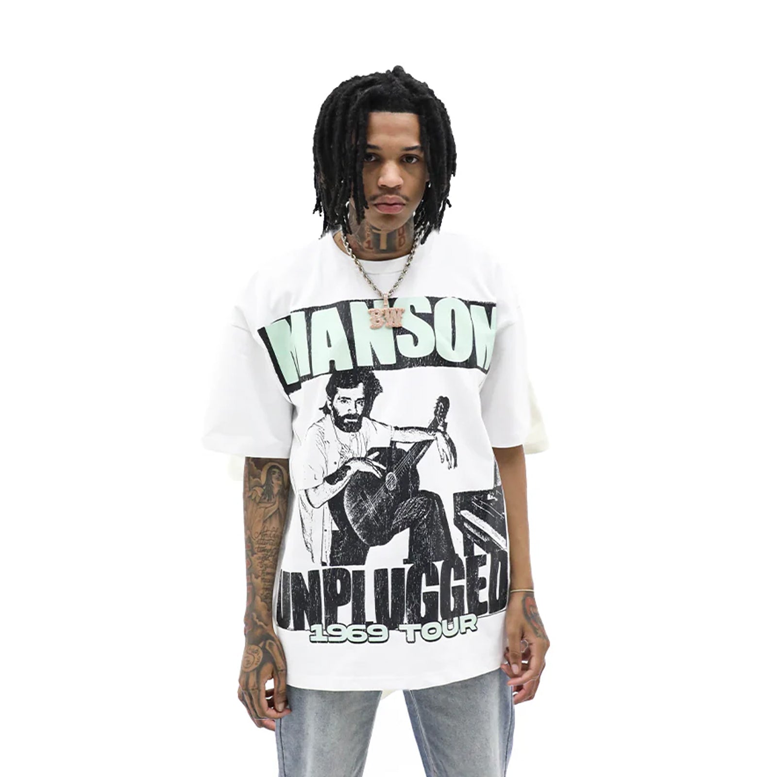 This tee dives into the darker side of culture—featuring gritty artwork inspired by the chaos of the late ‘60s. Designed by our in-house team, it’s finished with oversized prints and a washed effect that gives it a rebellious, lived-in look. Unapologetic energy front to back.