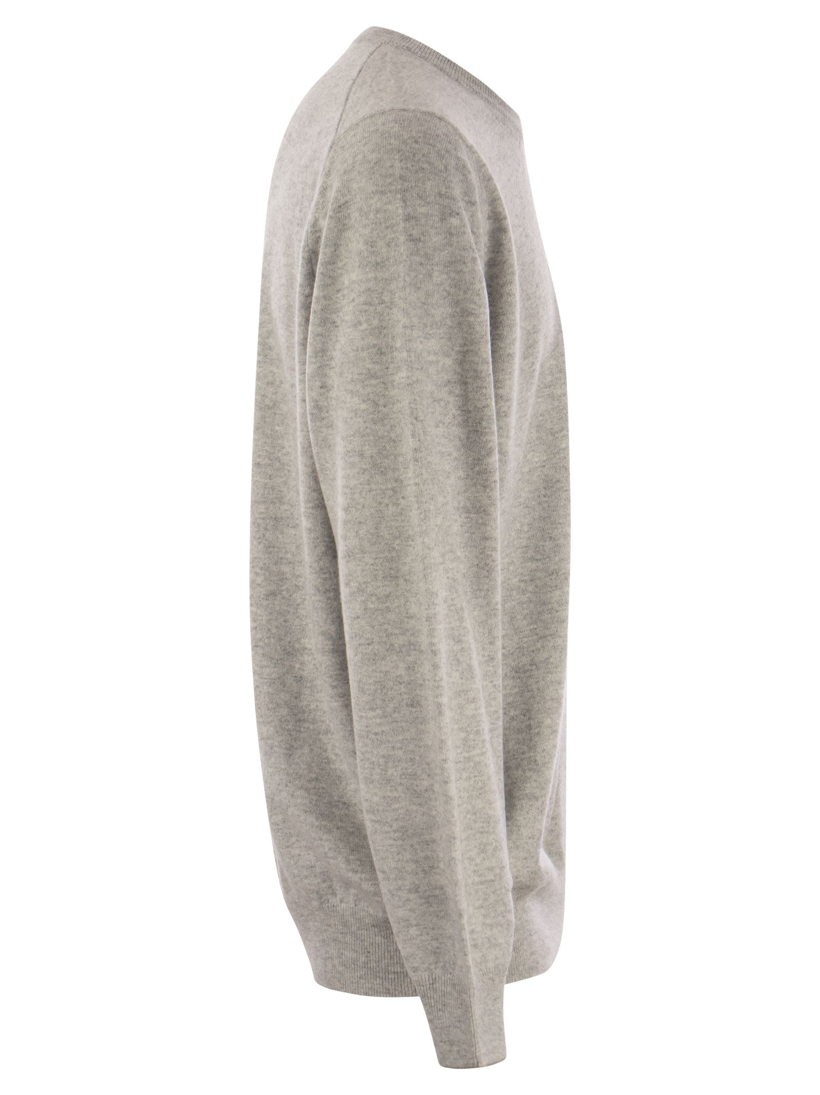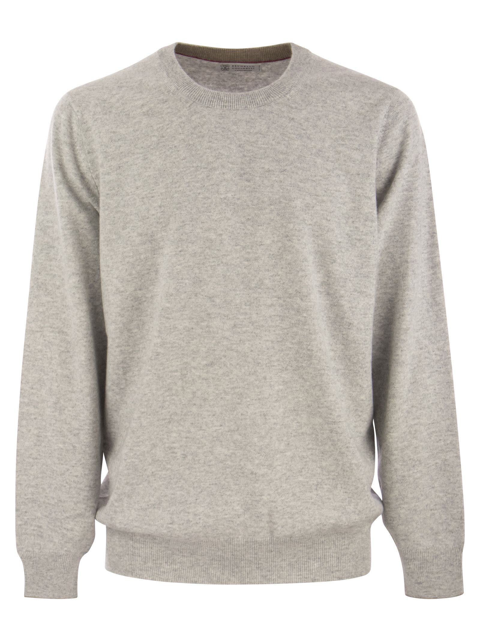 The excellence of Brunello Cucinelli's pure cashmere yarn enriches the essential style of men's knitwear. Ribbed details on the edges of the crew neck and cuffs add a sophisticated element to the garment, which offers a fit that is evenly proportioned and close-fitting to the chest. - Crew neck - Ribbed collar, cuffs and lower band - Plain stitch DESIGNER ID: M2200100 CK773