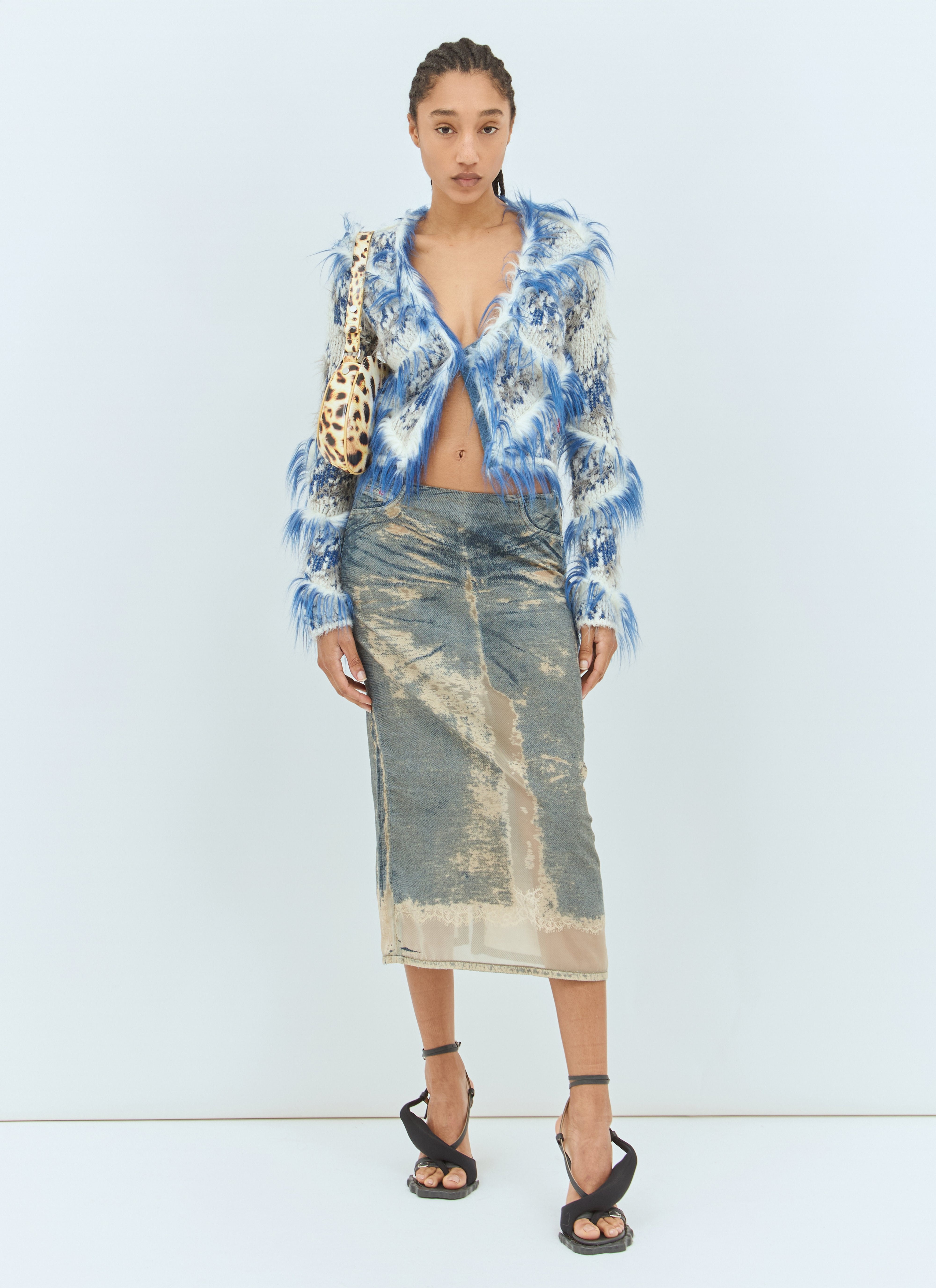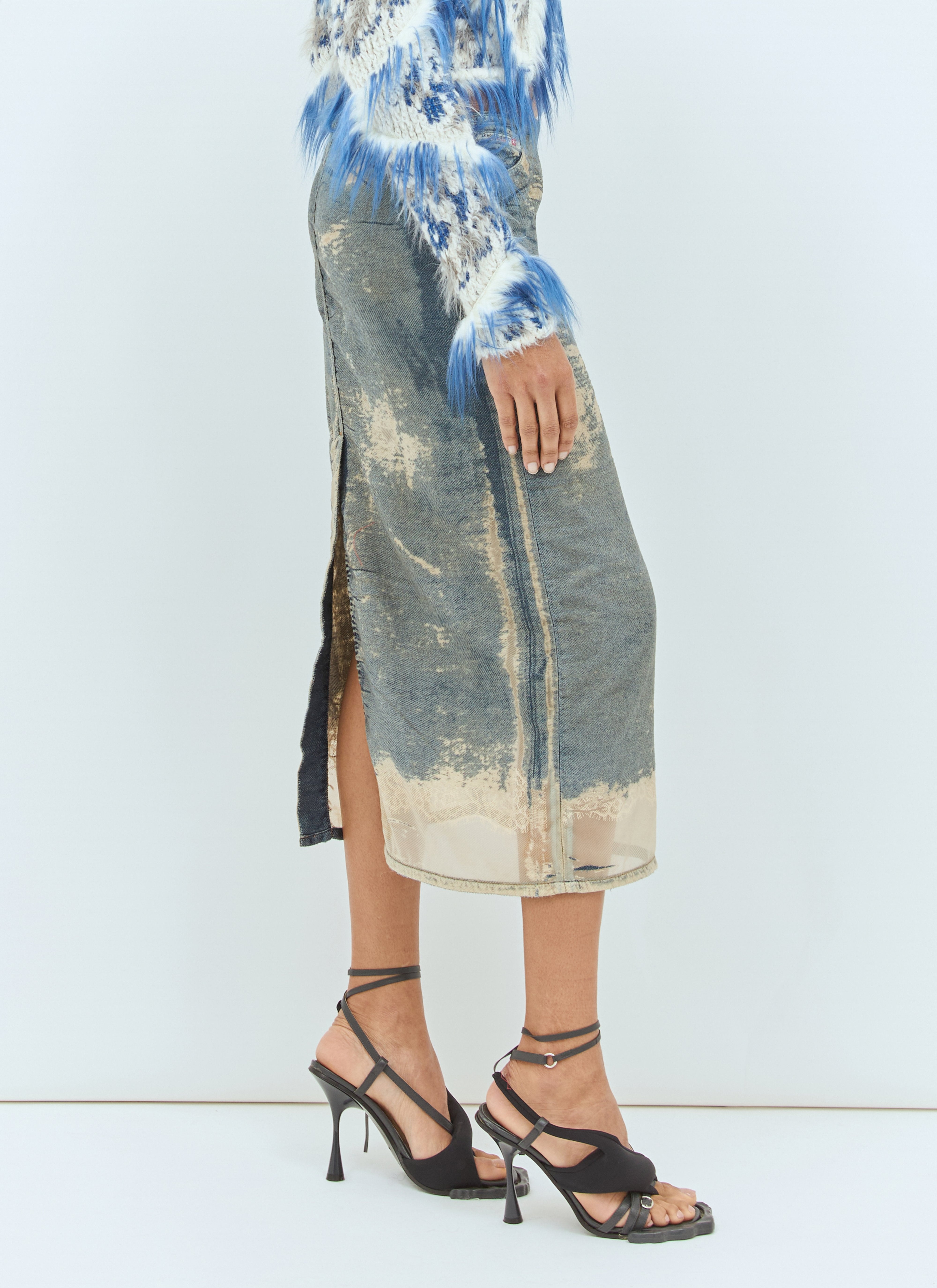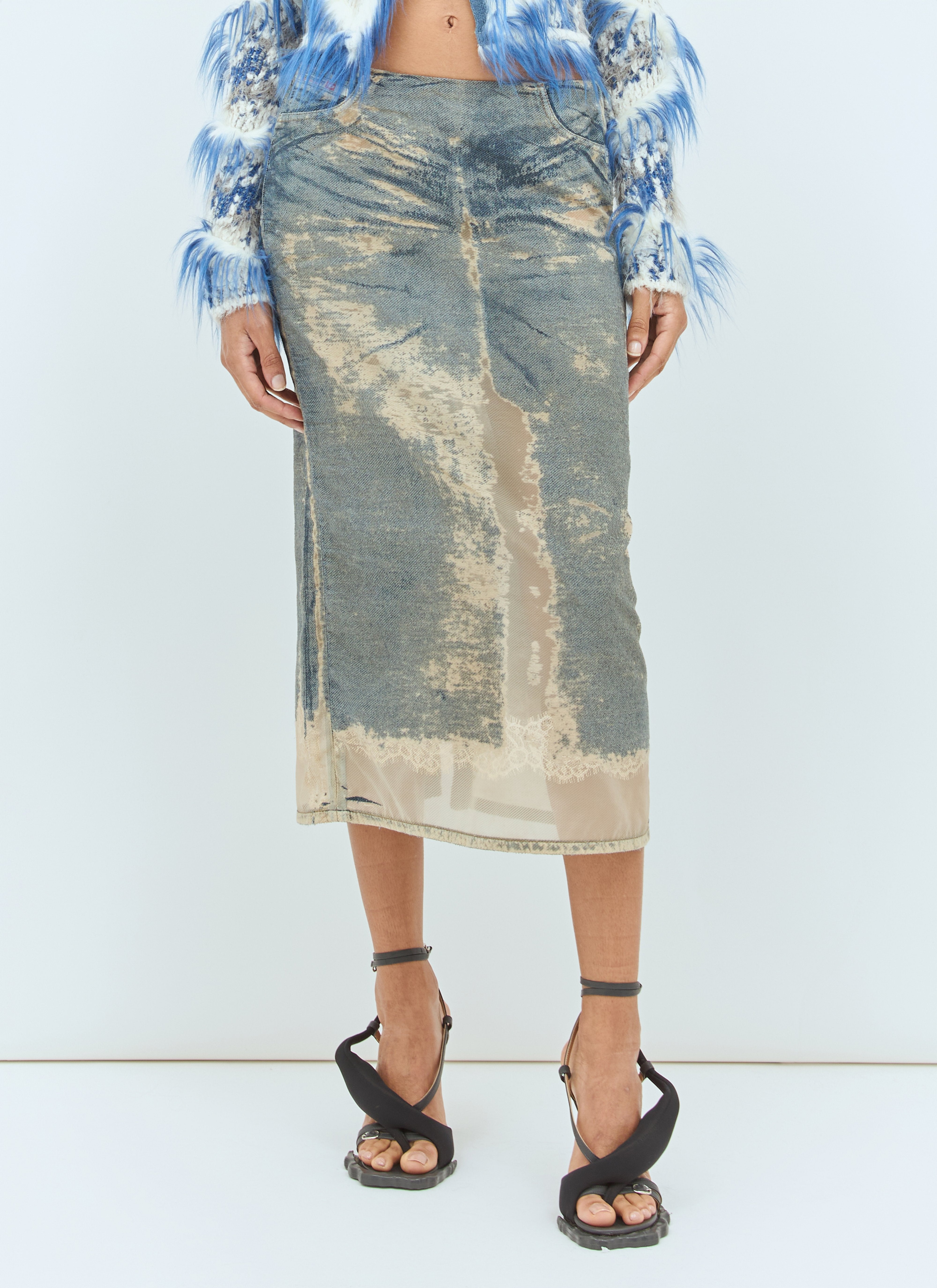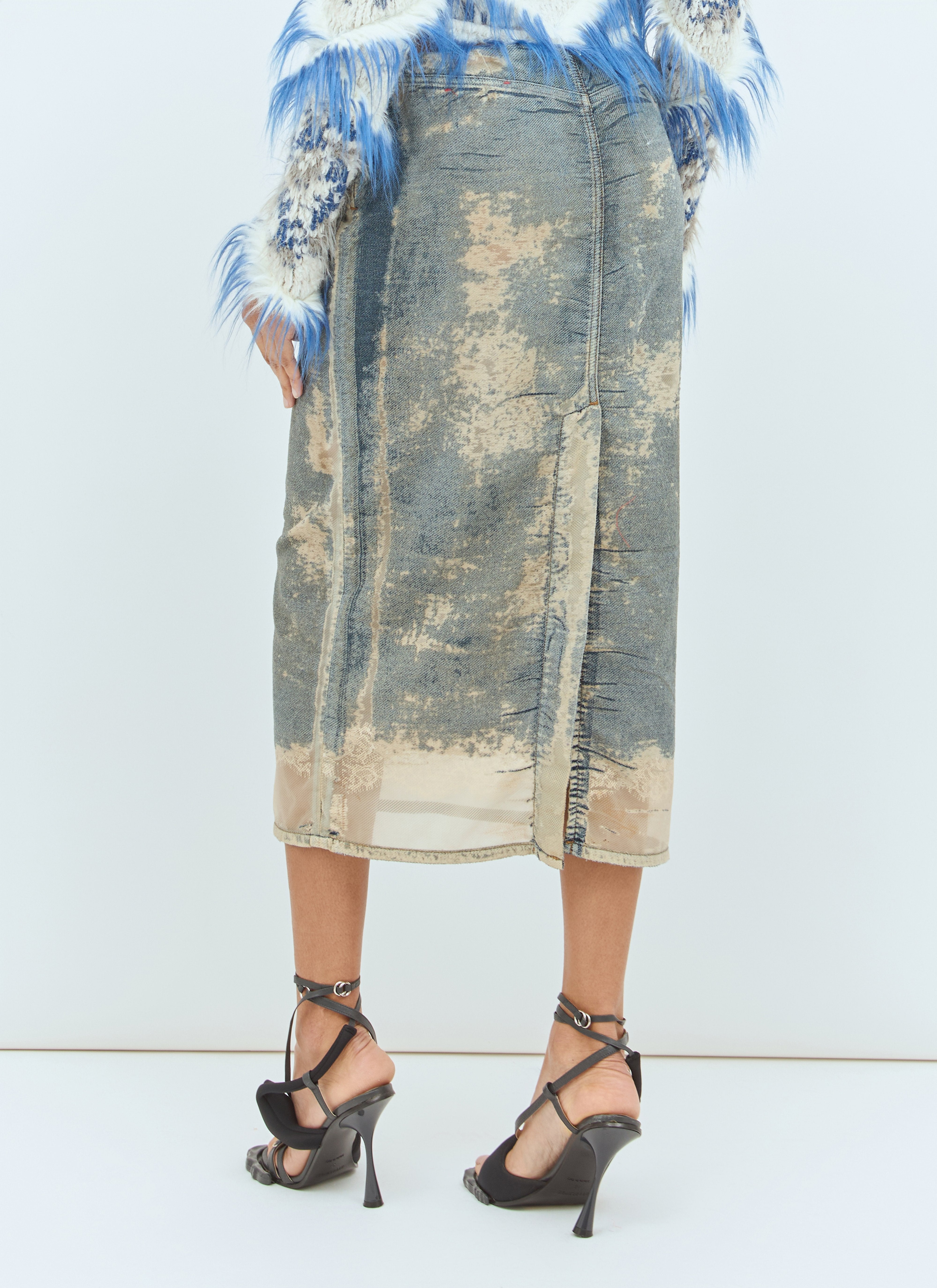 De-Pra-Mini-Fsf midi skirt in lightweight denim with sheer distressed panels.