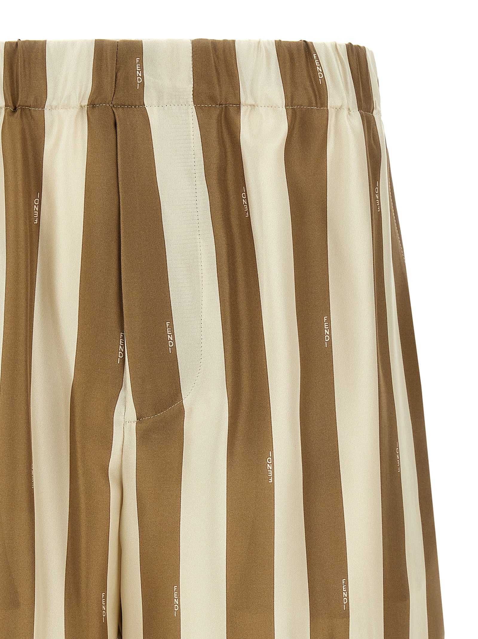 Silk bermuda shorts with iconic Pecin stripes, zip flap, elastic waistband, pockets, split on the leg bottom.