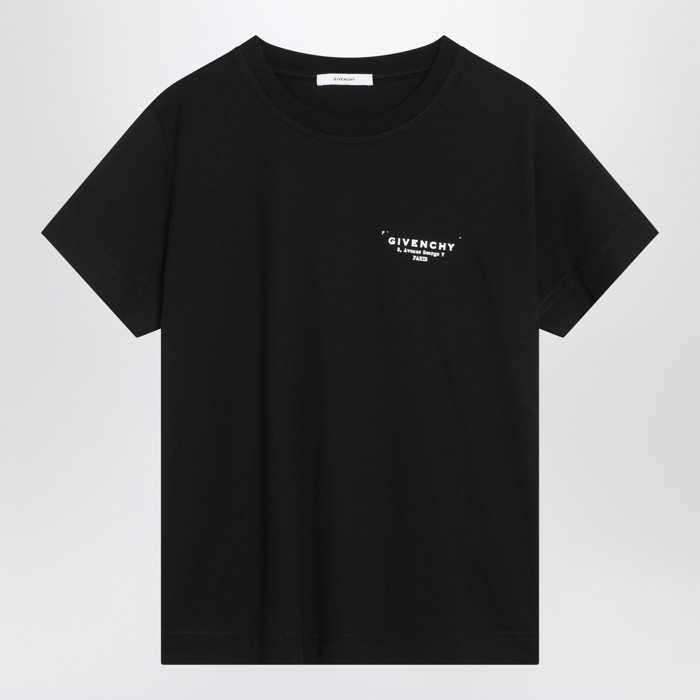 Givenchy black cotton T-shirt featuring short sleeves contrasting logo print on the chest and back and ribbed crew neck.