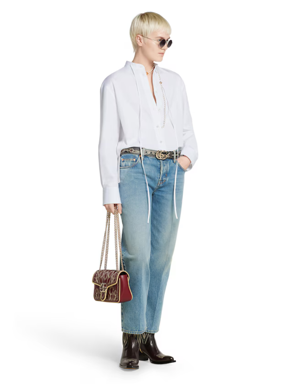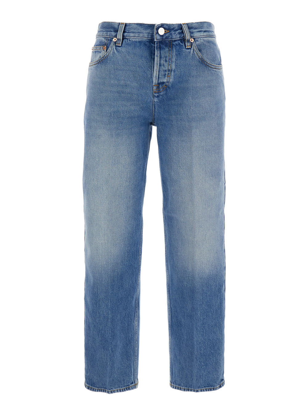 Gucci Women Blue Jeans With Logo Patch On The Rear And Faded Effect In Denim Woman