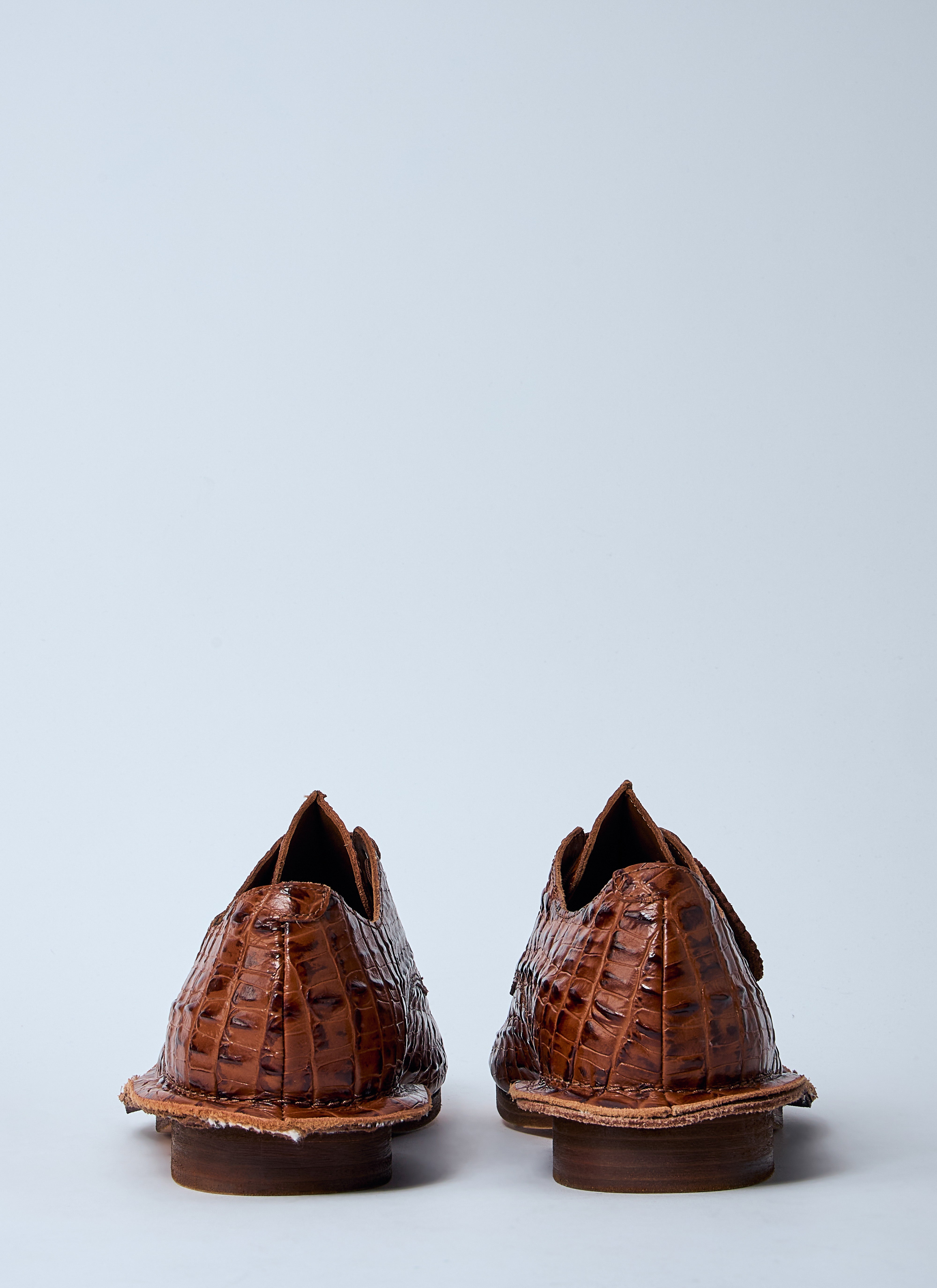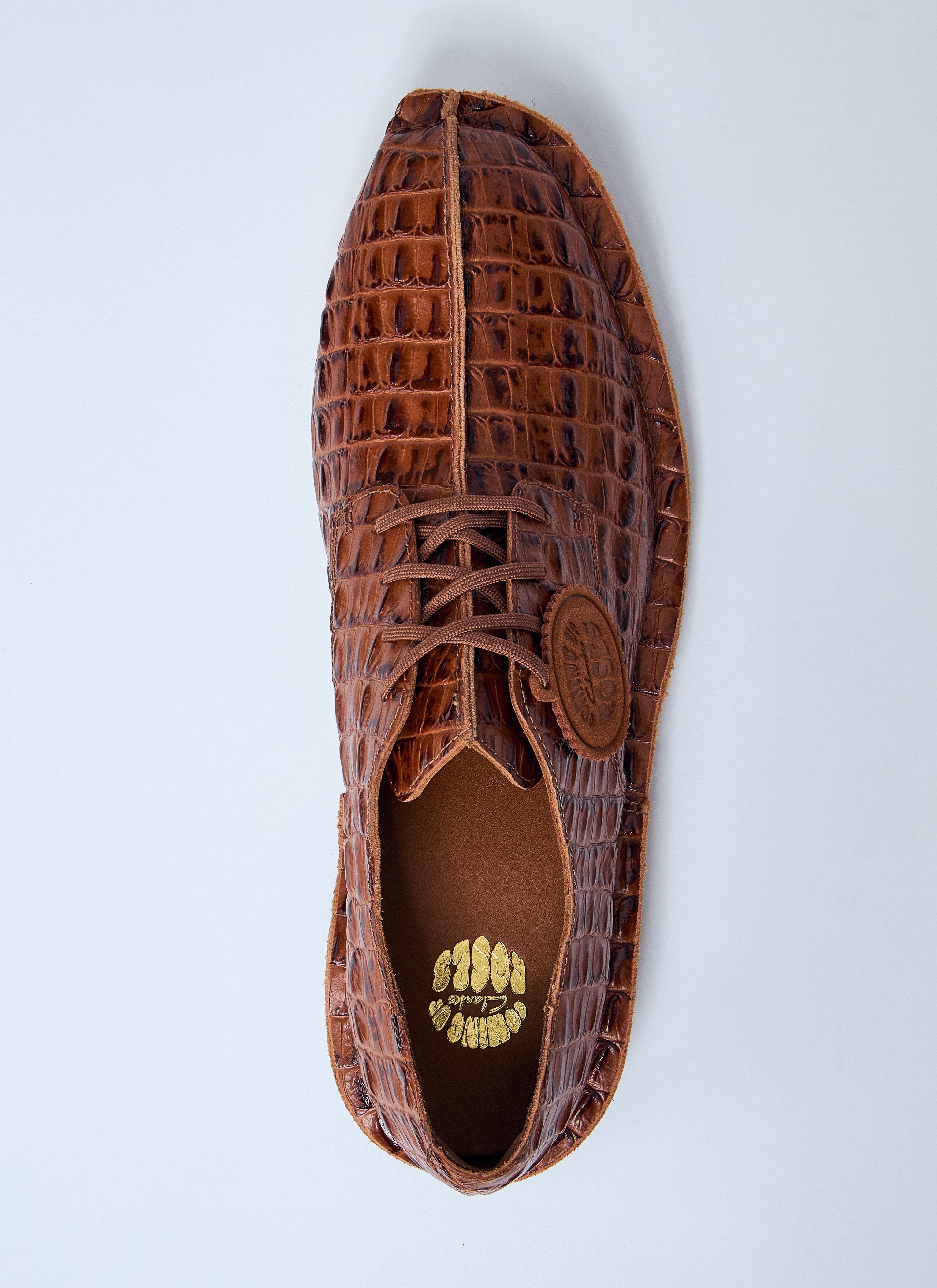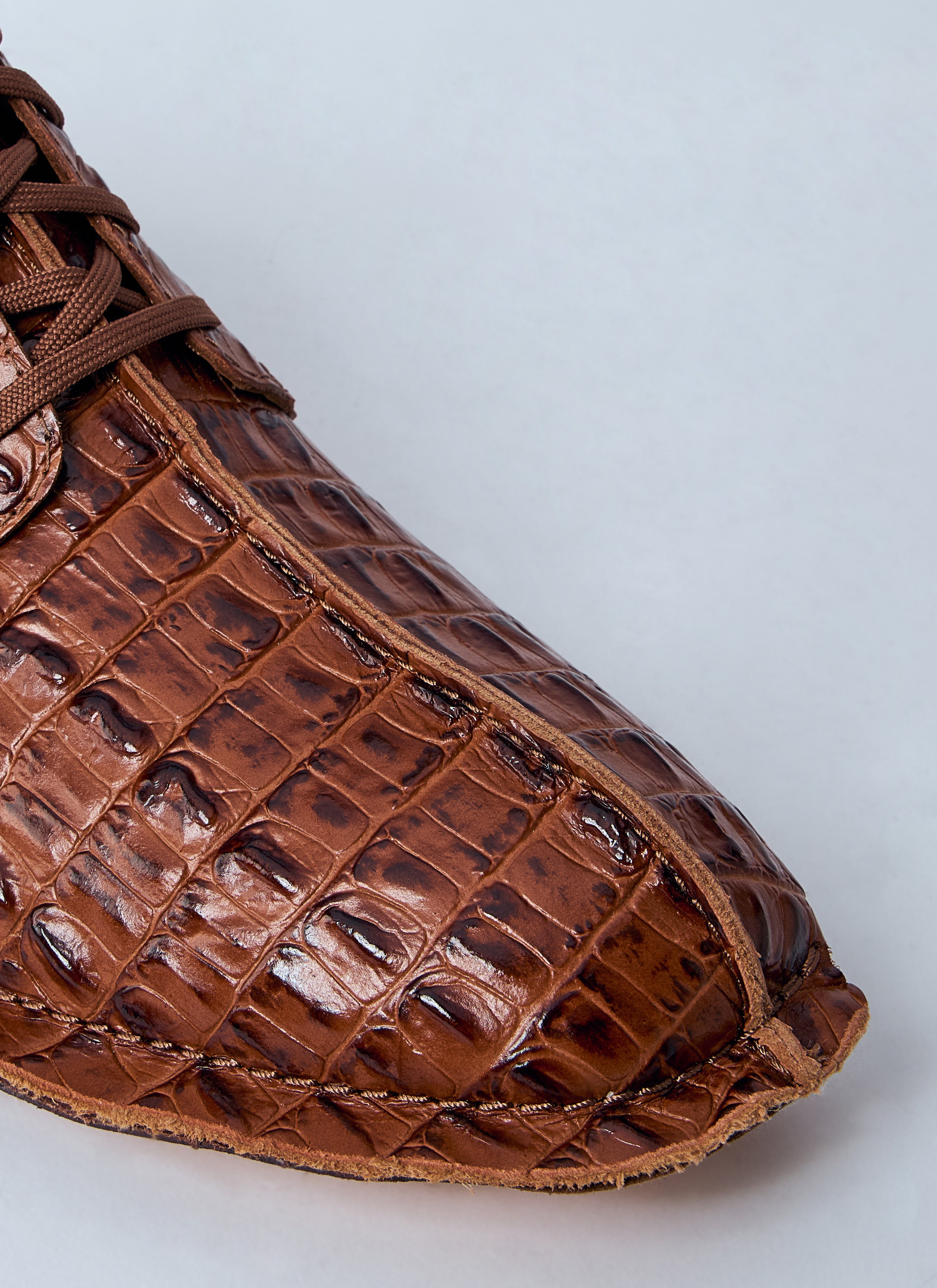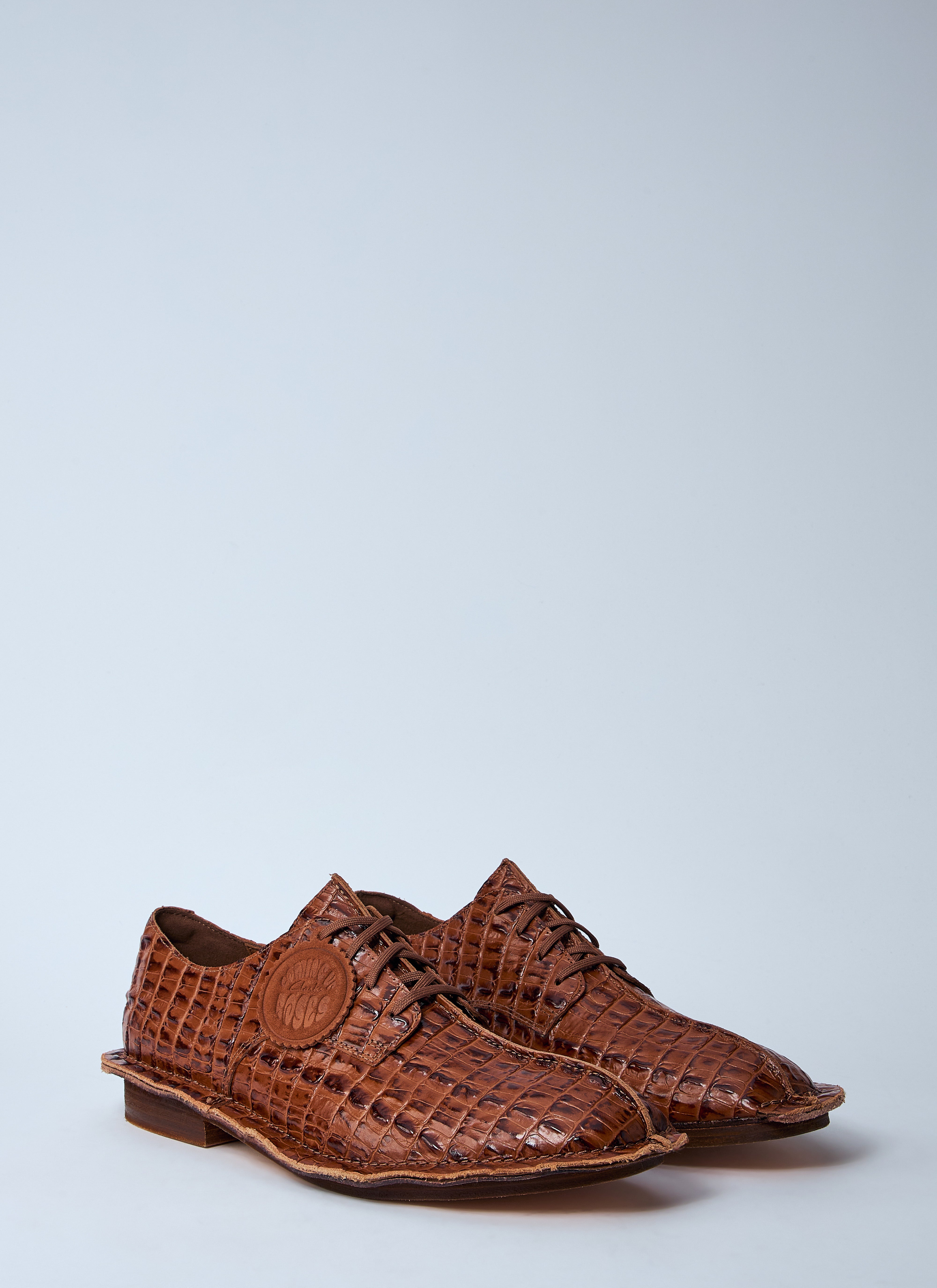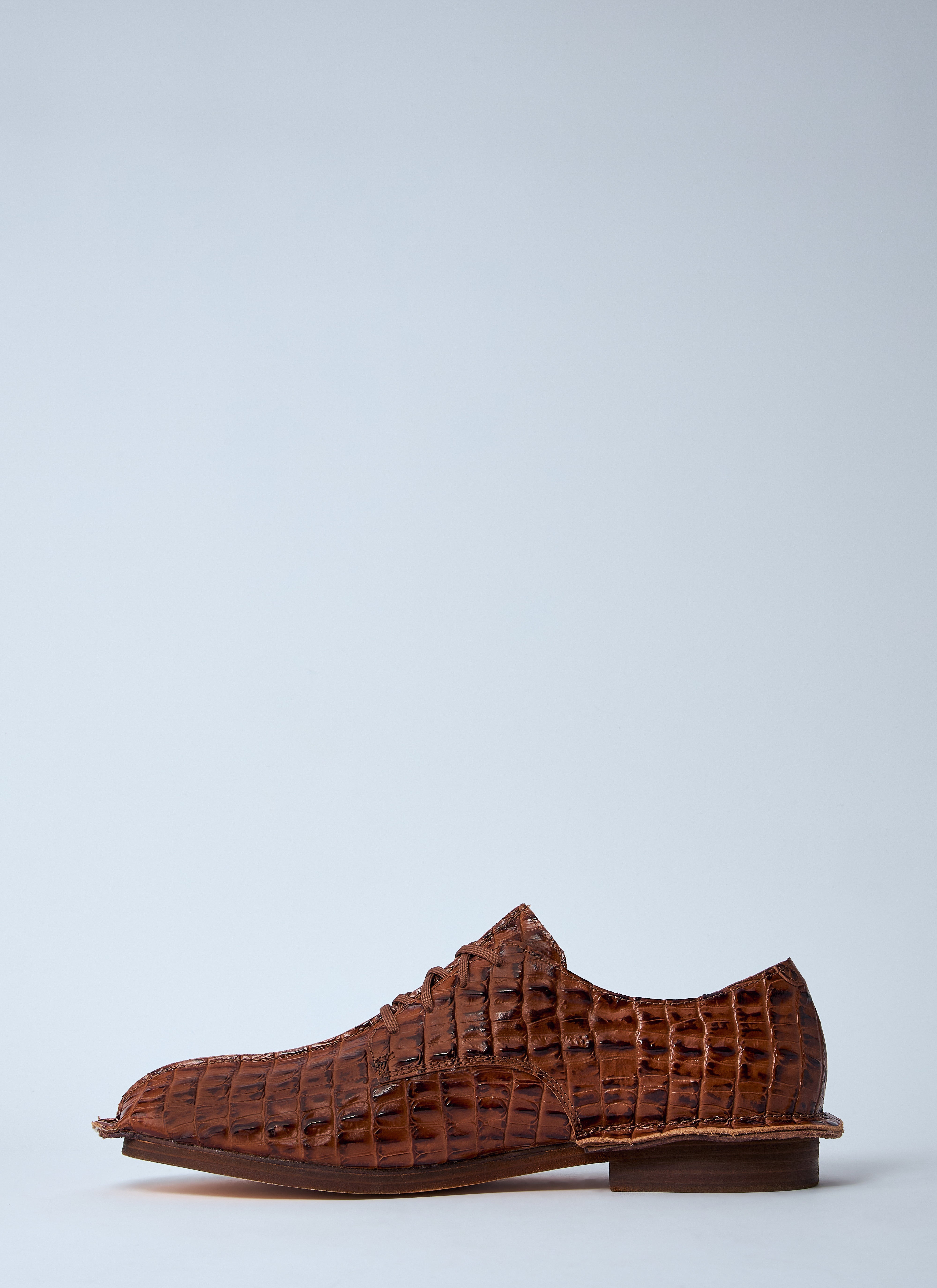 Derby shoes in croc-embossed leather with detachable logo tag.