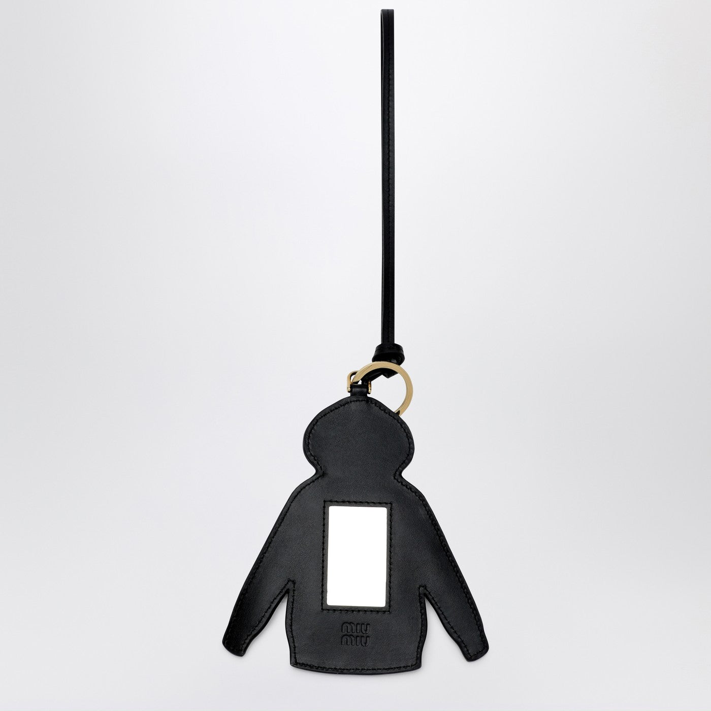 Miu Miu leather keychain characterized by a zip hoodie and metal logo lettering with a gold finish.