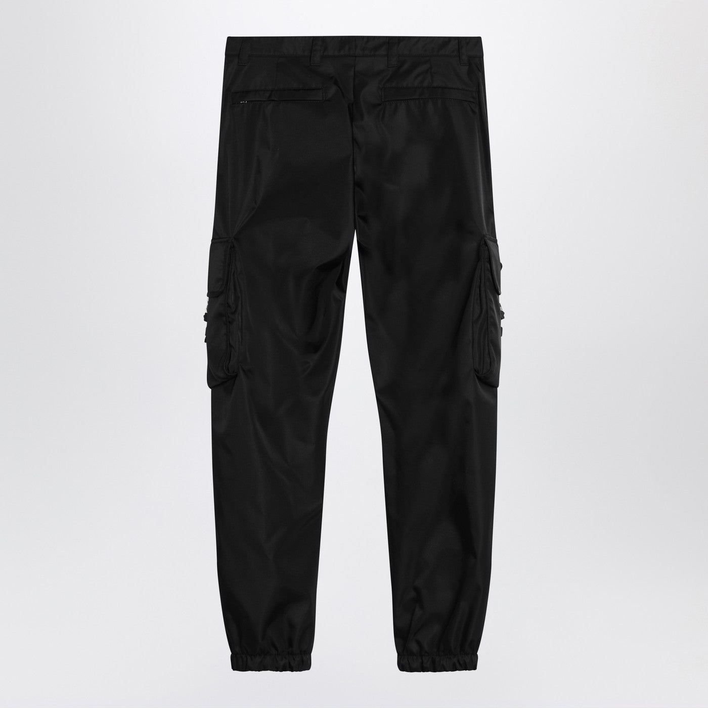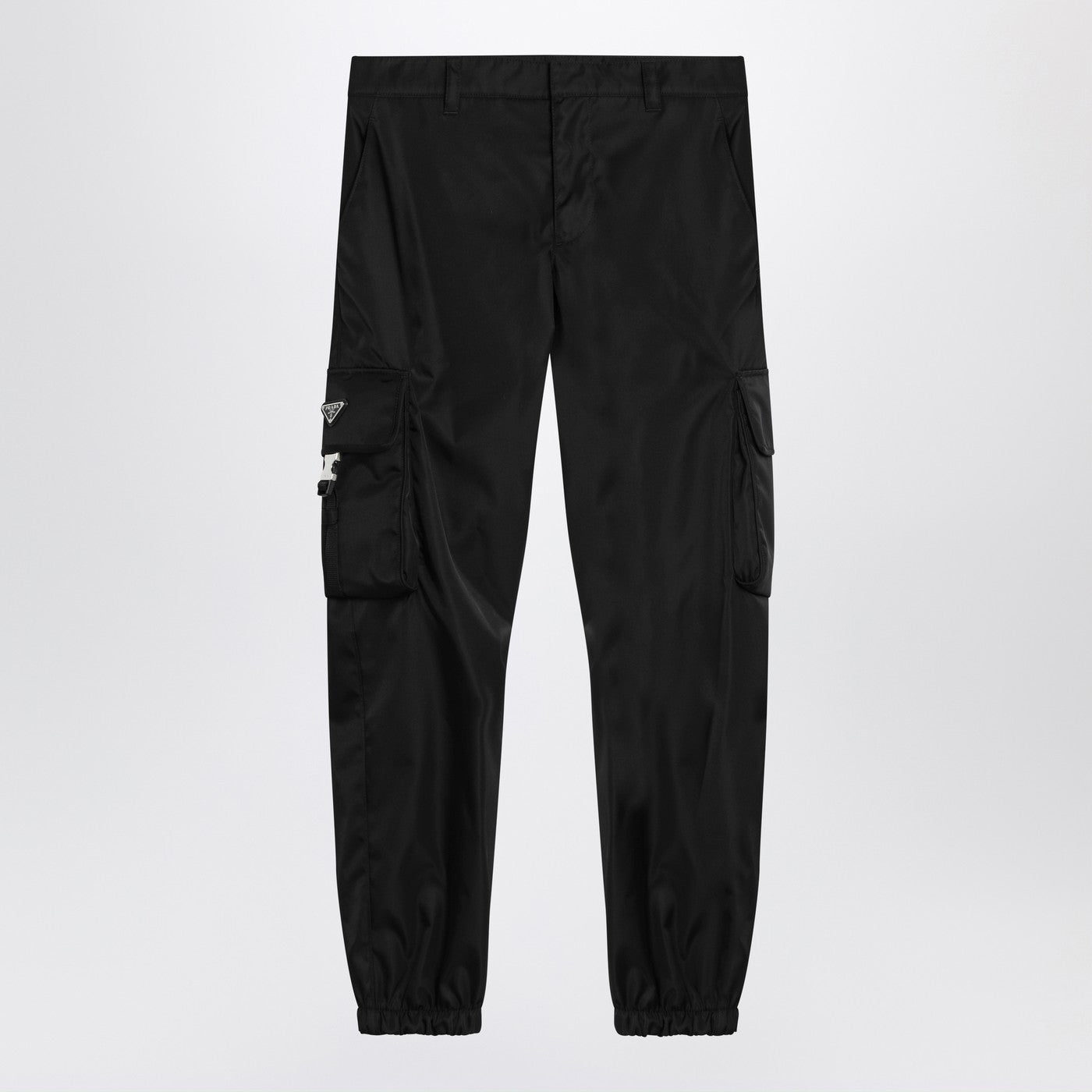 Prada pants in black Re-Nylon characterized by a zip closure and hidden hook two zip pockets on the back two side welt pockets elasticated hem two flap pockets with buckle on the side one of which has a triangular logo in enamelled metal and a slim fit.