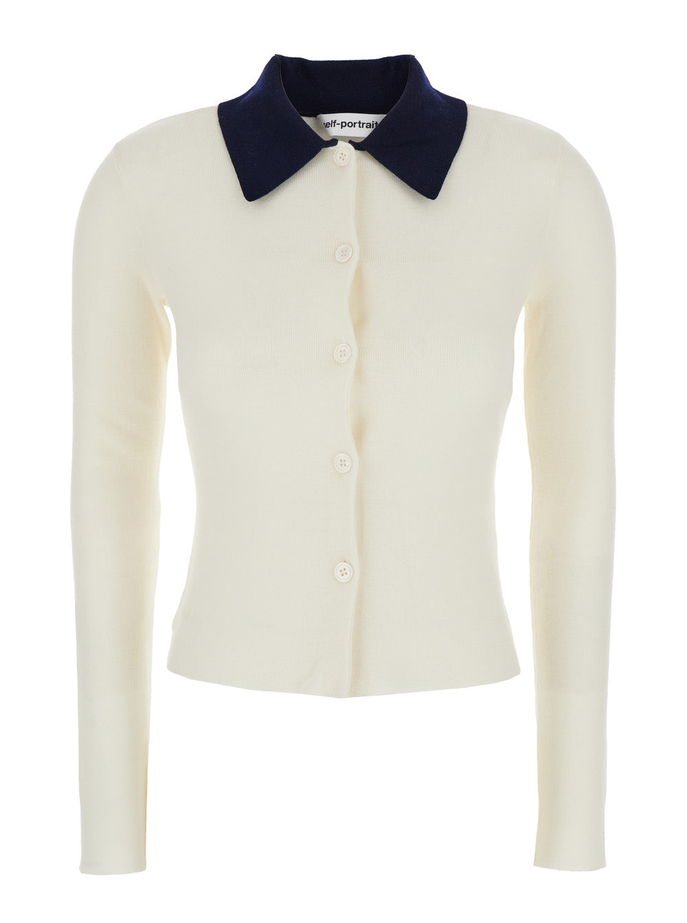 Self-Portrait Women White Cropped Cardigan With Contrasting Collar And Tonal Button Closure In Wool Woman
