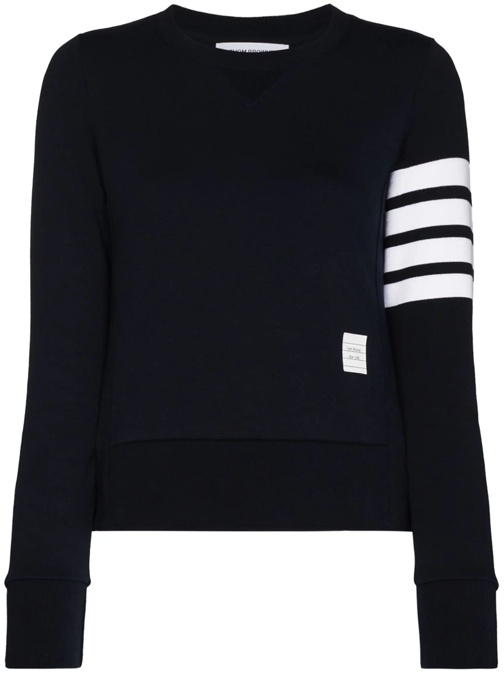 Sweatshirt with blue striped detail in cotton by Thom Browne. Model with crew neck, long sleeves and ribbed cuffs.
