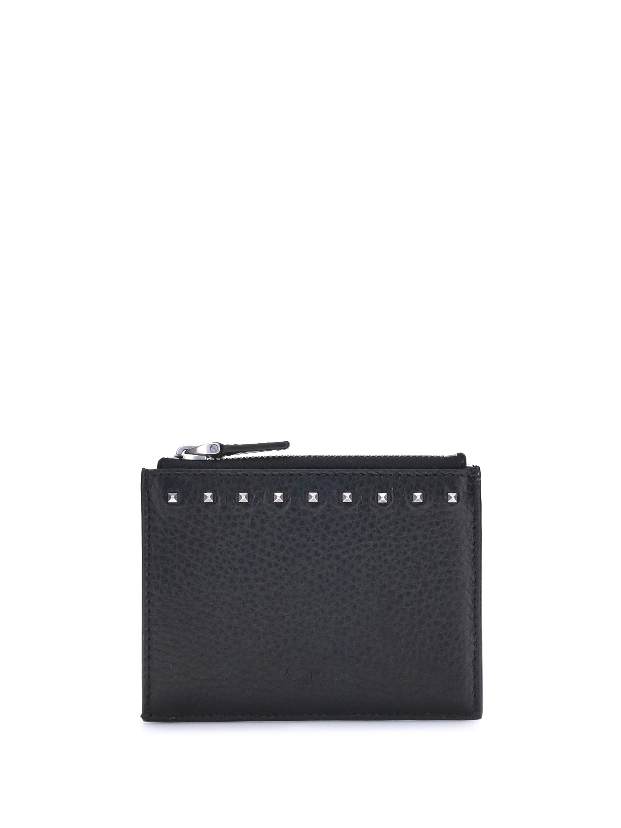 Valentino Garavani's grained leather Rockstud Card Holder features a compact and sophisticated design. Featuring the iconic Rockstud studs applied on the front, it features a welt pocket with top zipper closure, ideal for storing coins or small items. The back panel features practical card slots, perfect for organizing essentials in style. An elegant and functional accessory, an expression of the maison's distinctive aesthetic.