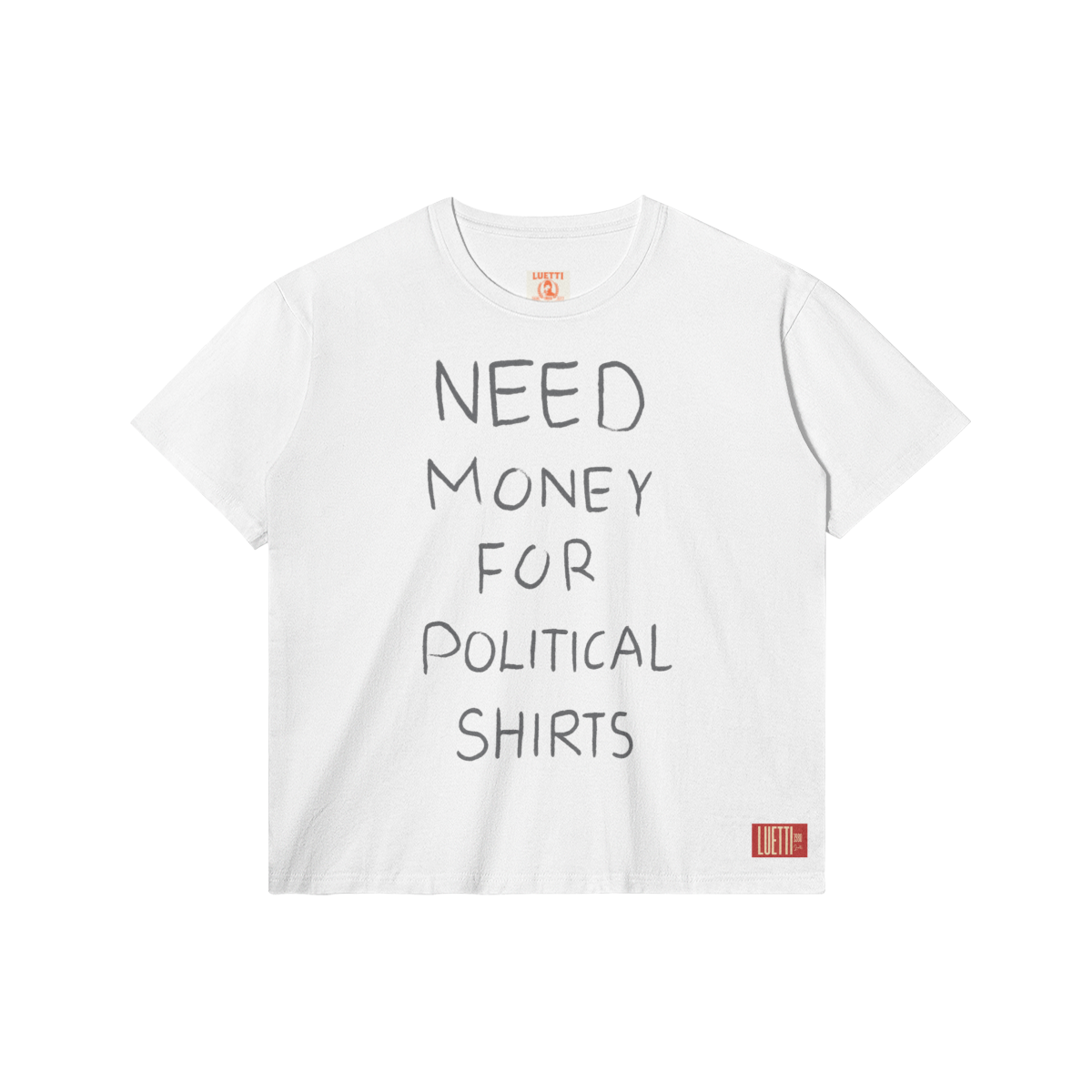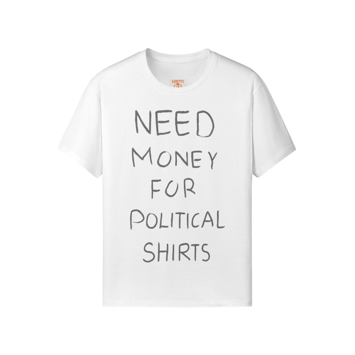 Premium 100% Sirospun cotton "Need Money For Political Shirts" regular fit tee with a comfortable classic fit and crew neck. Built to last with reinforced seams, taped shoulders, and reactive-dyed colors that resist fading. The slightly stretchy fabric moves with you throughout the day. Wash cold inside-out with mild detergent; tumble dry on low heat.