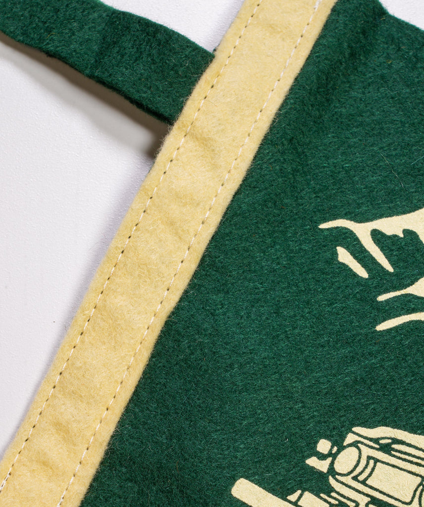 This forest green pennant—featuring the image of a Jeep ready for some adventures through the peaks—comes from a quote by environmentalist, John Muir. Perfect for mountaineers and lovers of the outdoors.