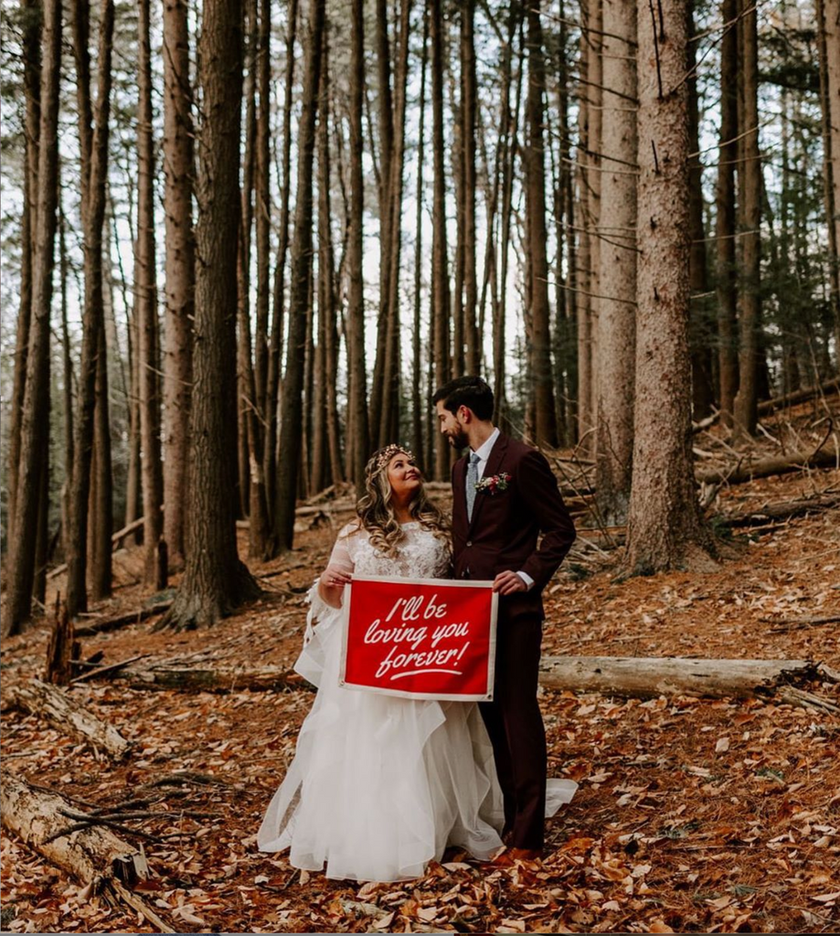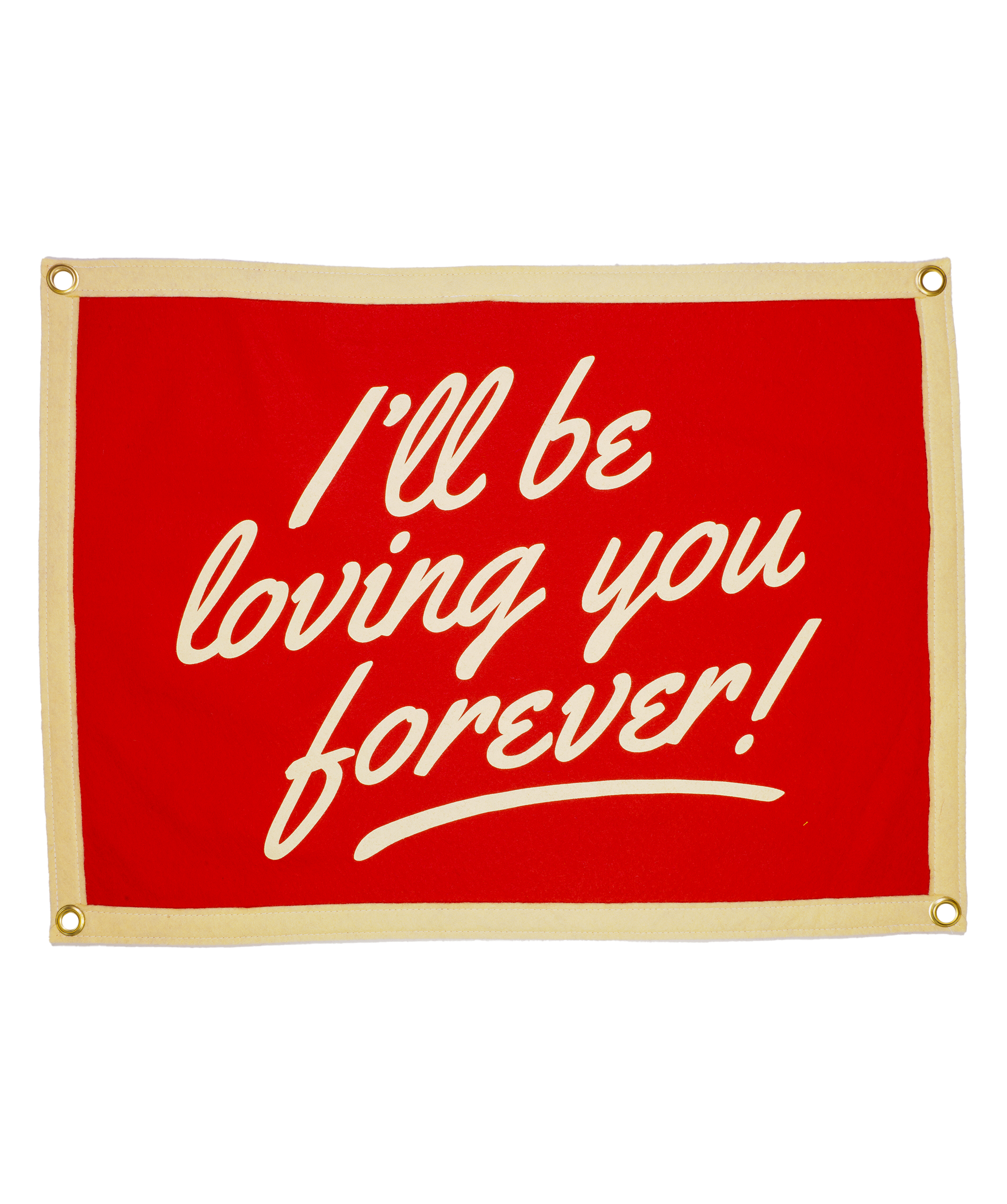And ever, and ever, and ever. Celebrate your eternal romance with this red and cream camp flag.