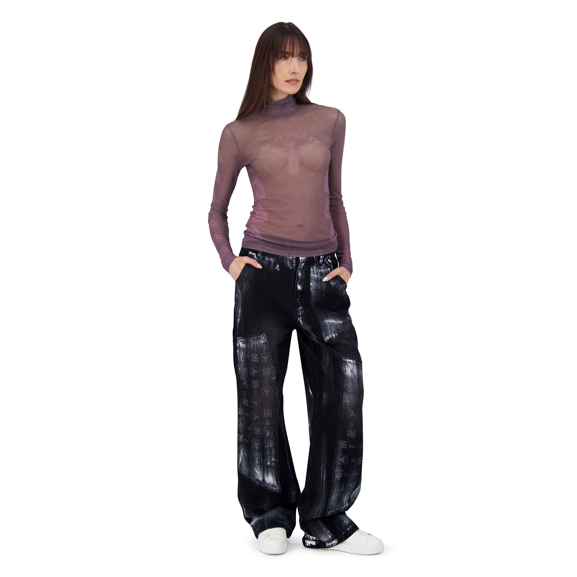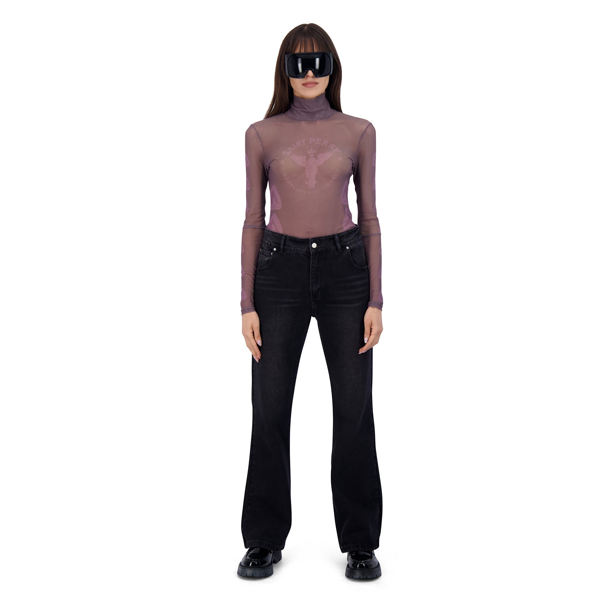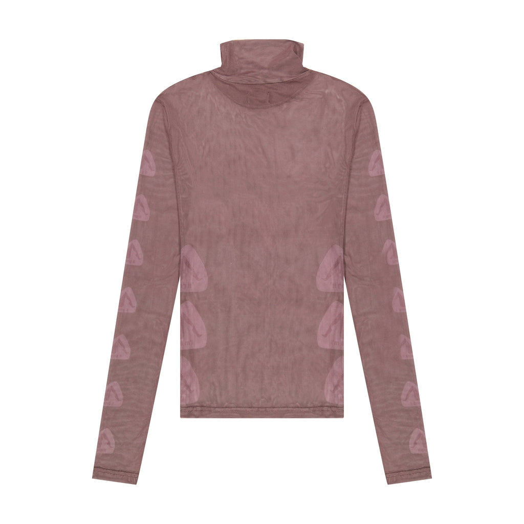 - Semi-sheer nylon mesh turtleneck