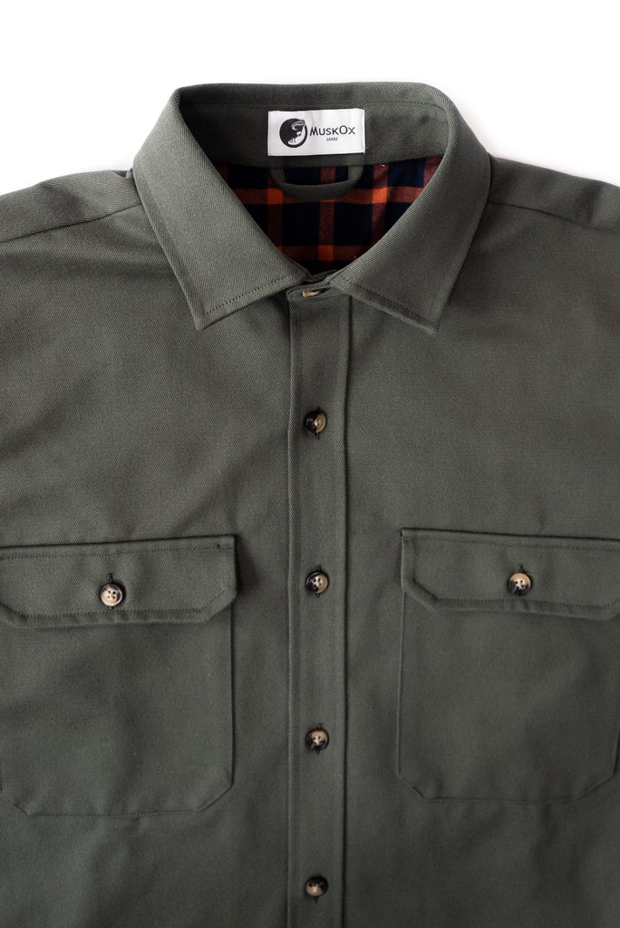 The namesake flannel of Yukon, a resident muskox at the Alaska Wildlife Conservation Center. This flannel embodies the strength and warmth of Yukon's two-layered coat as we constructed it out of a heavyweight cotton twill and lined with cotton flannel. This heavyweight flannel jacket has a soft brushed interior, you won't have to sacrifice comfort for durability. The Yukon comes equipped with two secure flapped chest pockets and two side-seam pockets.