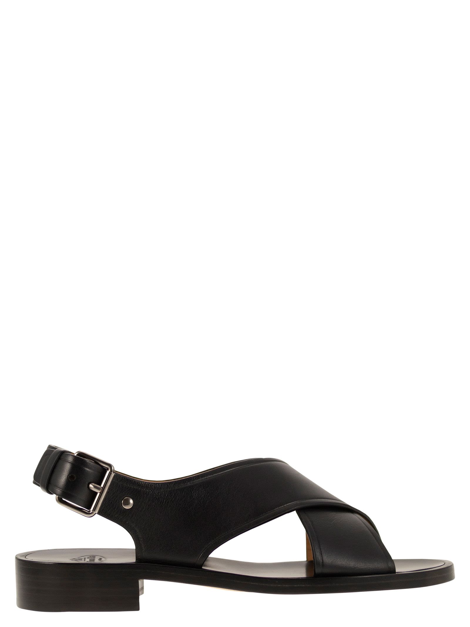 A distinctive Church's sandal, Rhonda is presented in a new variant in prestige calfskin with a natural sheen, a precious material that reveals the brand's attention to detail. Defined by an essential design with maxi braided straps that give it a contemporary look, the model is ideal for city walks and elegant holidays. - Silver-coloured buckle closure - Prestige calfskin with natural finish - Leather sole - Church's logo on insole and sole DESIGNER ID: DX0104 9FG F0AAB 100% Calfskin leather Sole: Leather Heel height: 3 cm