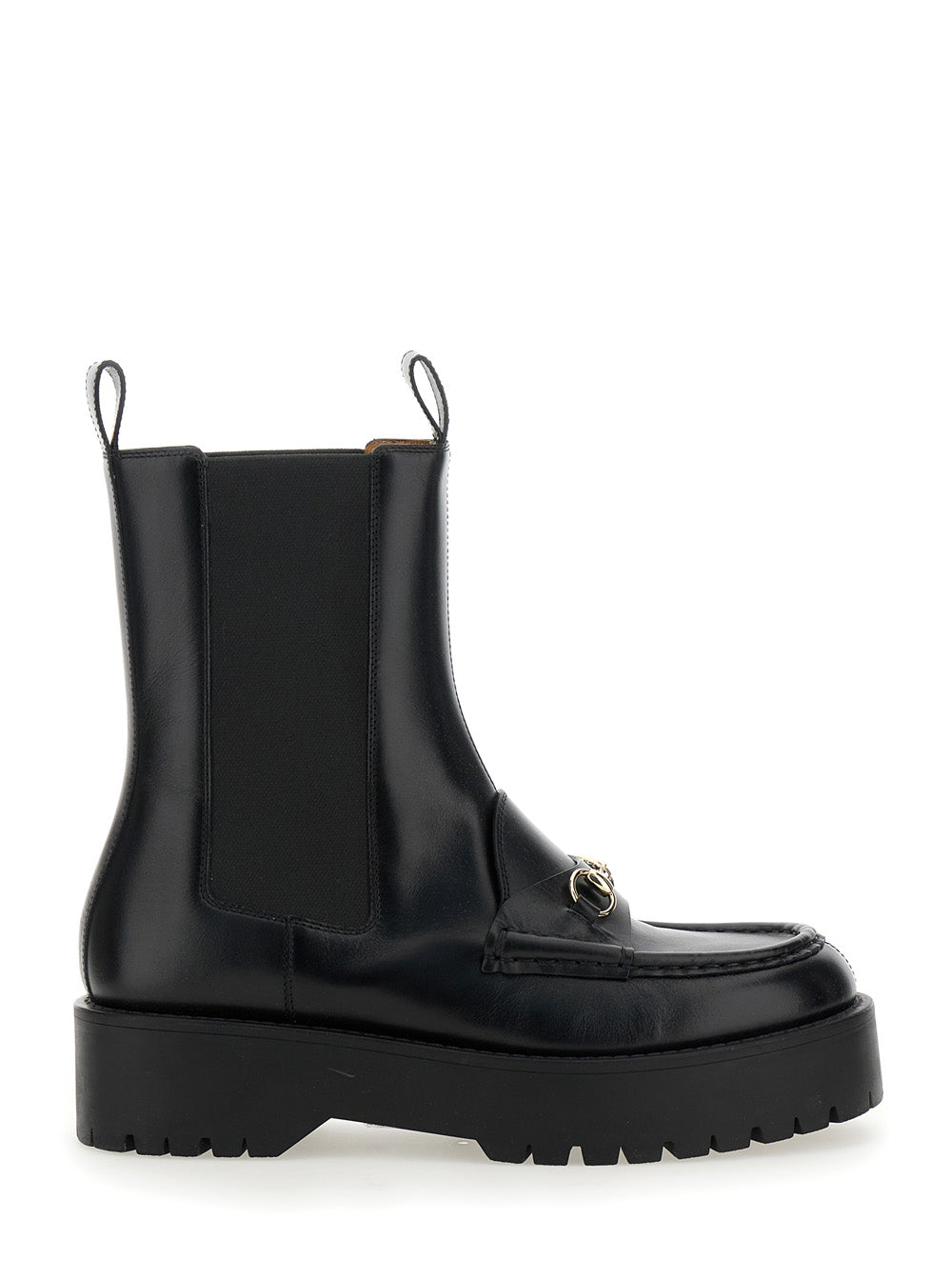 Gucci Women Black Ankle Boots With Horsebit And Lug Sole In Leather Woman