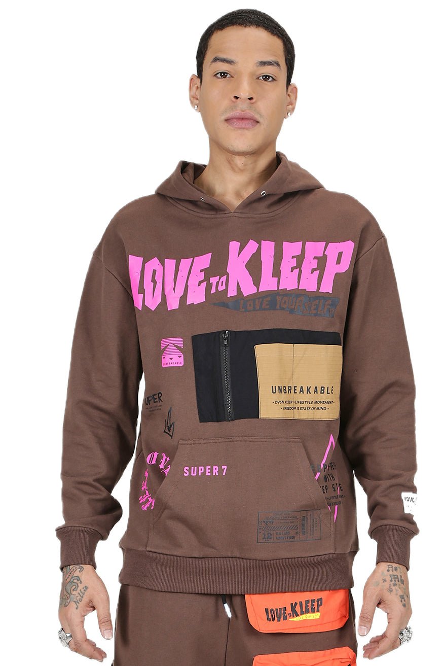 - 320g finely brushed French terry fleece with heavy screen prints, functional twill pocket & kangol pocket in front.
