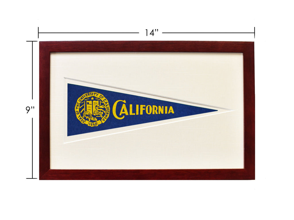 A rare piece of vintage California history from the 1950s available in your choice of a Light Wood or Mahogany frame. Framed in U/V glass and cut mat with the history of Hormel Pennants on the back.
