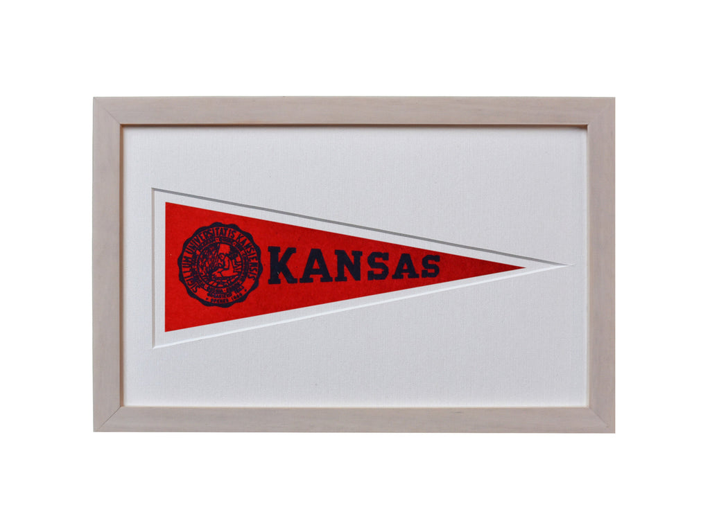A rare piece of vintage Kansas history from the 1950s available in your choice of a Light Wood or Mahogany frame. Framed in U/V glass and cut mat with the history of Hormel Pennants on the back.