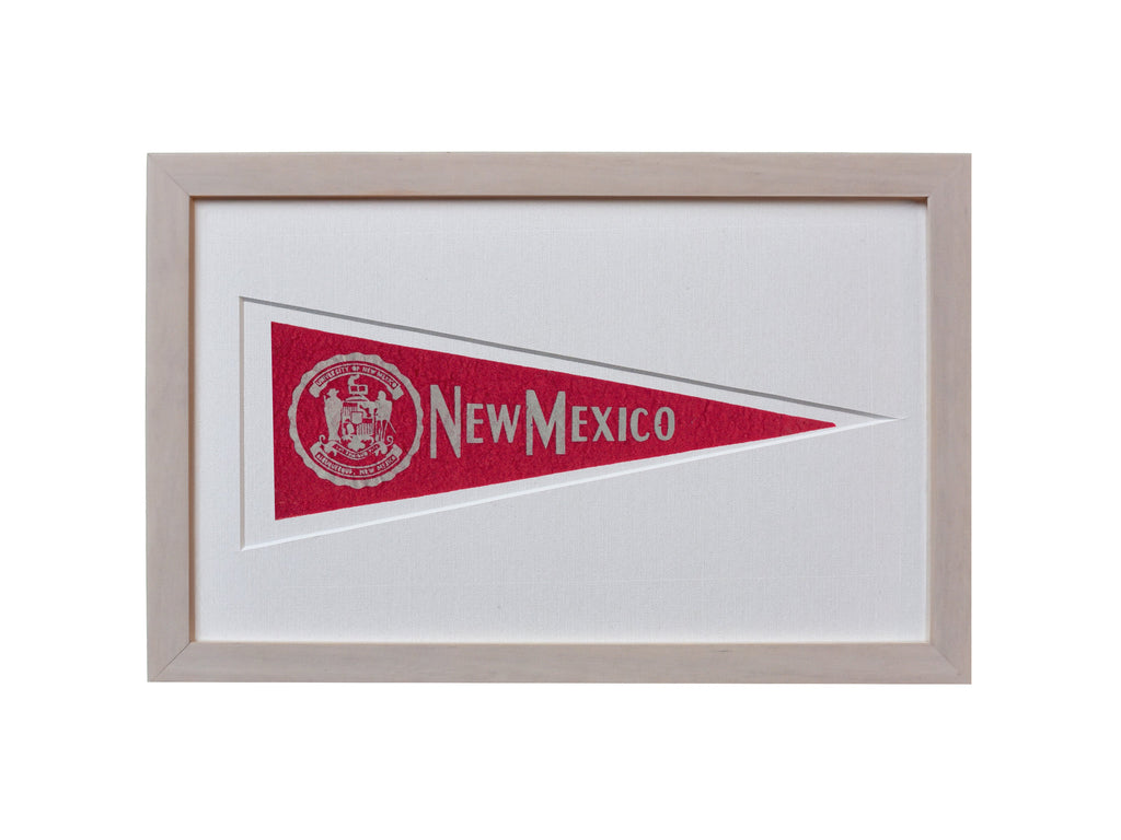 Calling all Lobos! A rare piece of vintage New Mexico history from the 1950s available in your choice of a Light Wood or Mahogany frame. Framed in U/V glass and cut mat with the history of Hormel Pennants on the back.