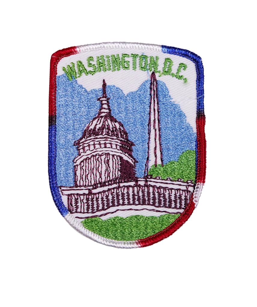Show off your east coast Washingtonian pride with this multicolored embroidered patch—featuring some of the U.S. capital's most historic landmarks, including the Capitol Building and the Washington Monument.