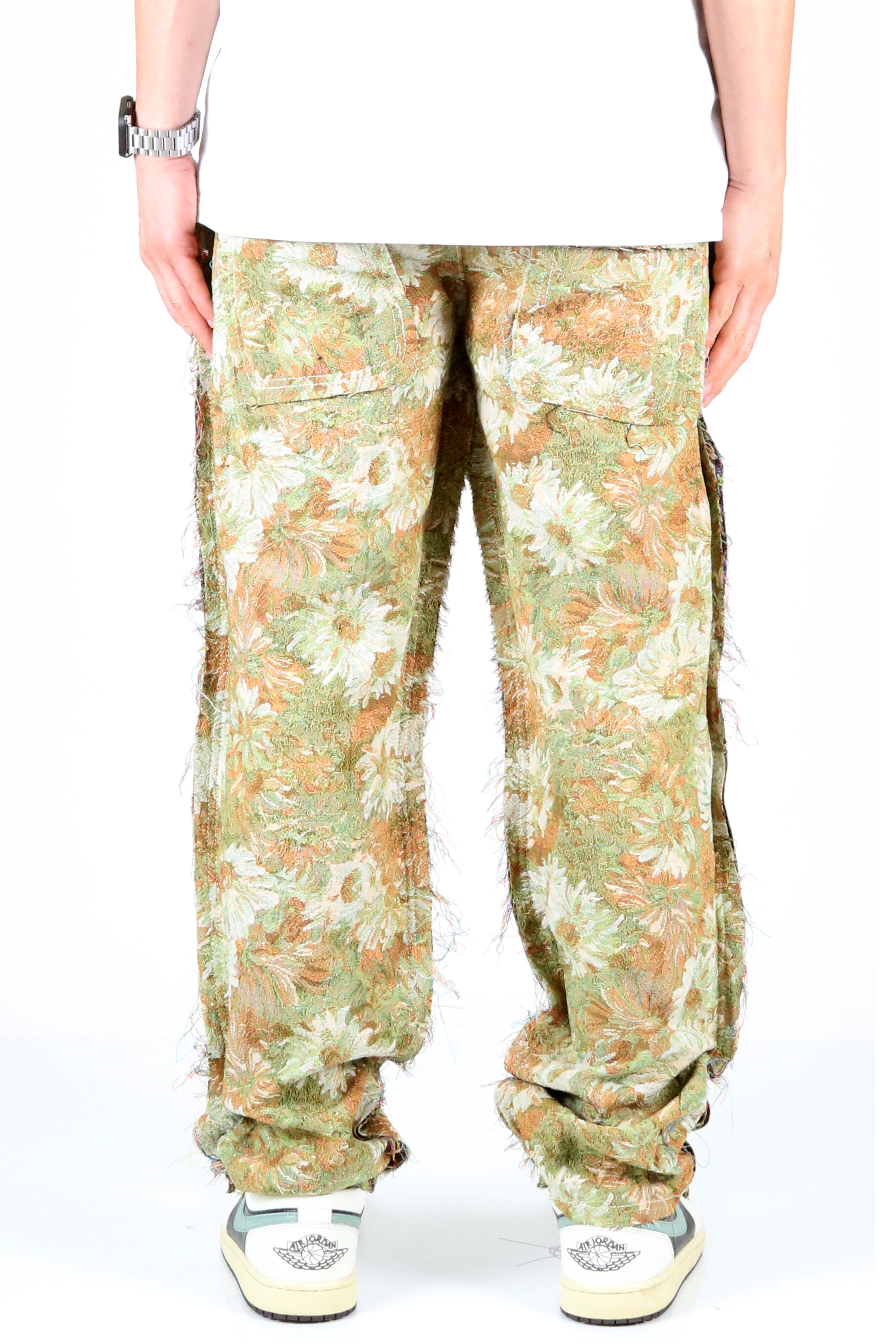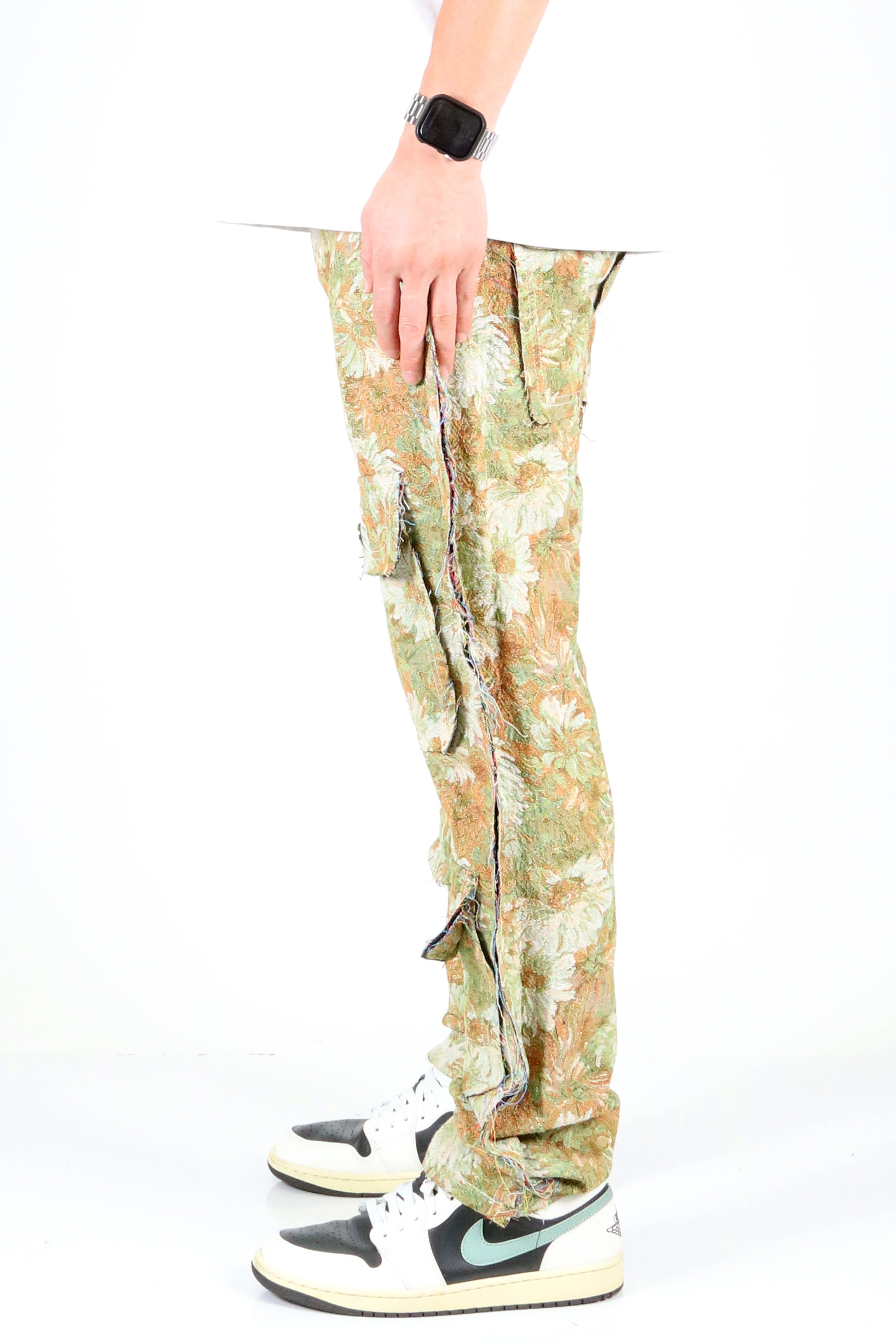 - Relax Fit Tapestry Front Multi Cargo Pocket Pants.